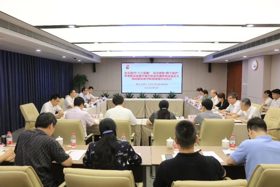卢山指出,省第十五次党代会报告深化了对做好浙江工作的八个规律性认识。要以“两个维护”政治自觉全面推进习近平新时代中国特色社会主义思想在浙江的生动实践,深刻理解和把握“5大战略指引”和“11方面的重要遵循”。他强调,今后五年要把推动共同富裕先行和省域现代化先行作为奋斗目标,围绕“10个着力”主要任务,在高质量发展中实现“两个先行”。