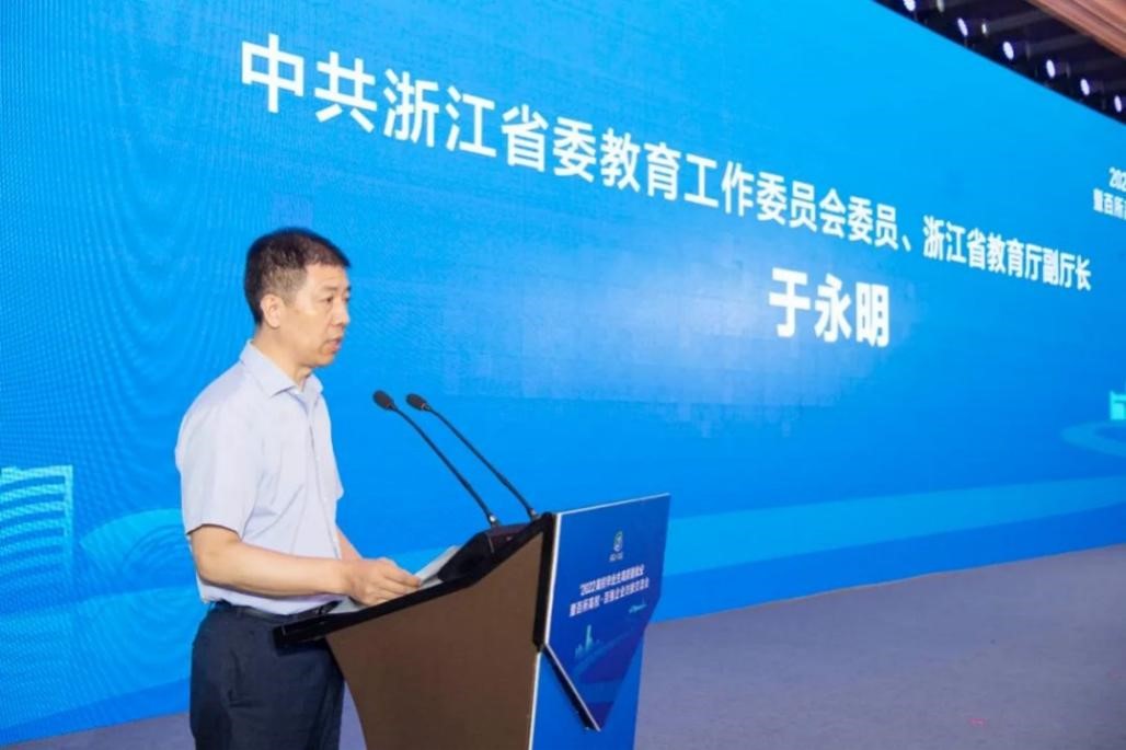 6月24日上午,由浙江省教育厅、浙江省人社厅、浙江省团委主办,绍兴市上虞区委、区政府承办的“百所高校·百强企业”就业实习对接交流活动在绍兴余坤喜来登酒店举行。浙江省教育厅副厅长于永明、浙江省人社厅副厅长陈中、我校党委副书记姚珺出席活动。