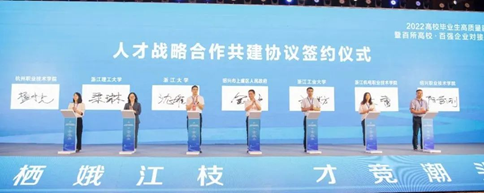 活动现场,上虞区政府与我校在内的6所高校签订人才战略合作共建协议,组织签署了校企合作协议,并举行了大学生实习实训基地授牌仪式和“虞见一夏”大学生见习实习活动启动仪式。