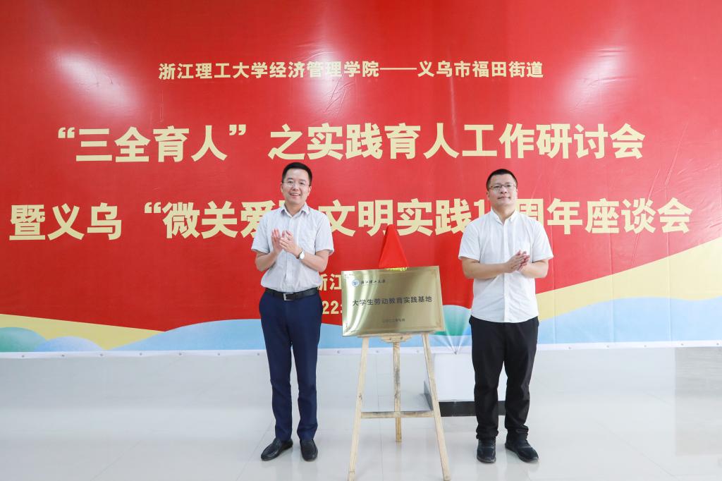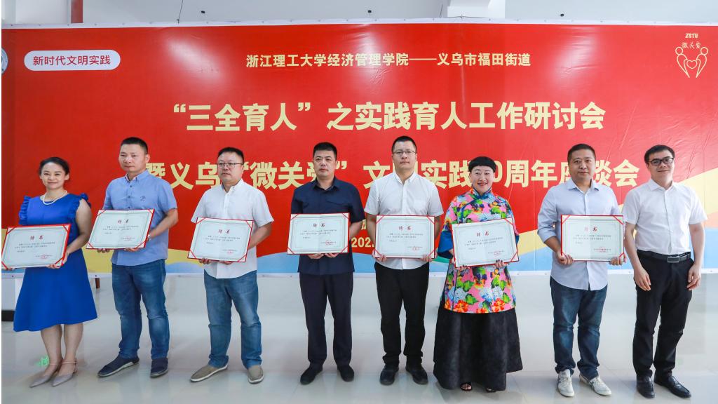 为进一步贯彻落实“立德树人”根本任务,丰富“三全育人”工作内涵,持续深化校地合作成果,构建“实践育人”长效机制,7月9日上午,mk官方网站_mk(中国)经济管理学院和义乌市福田街道“三全育人”之实践育人工作研讨会暨义乌“微关爱”文明实践10周年座谈会在过溪楼村新时代文明实践站举行。副校长王剑俊,义乌市委常委、宣传部部长朱有清出席活动。