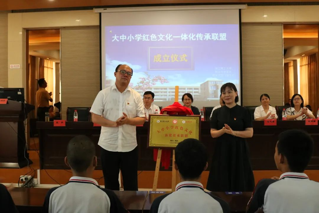 会上,成立了大学生思想政治教育教学与研究基地,两校一馆签订党建共建协议,就整合资源组建红色文化宣讲团、开发不同学段的红色文化教育项目,纵深推进大中小学红色文化一体化传承联盟建设商讨了工作思路。