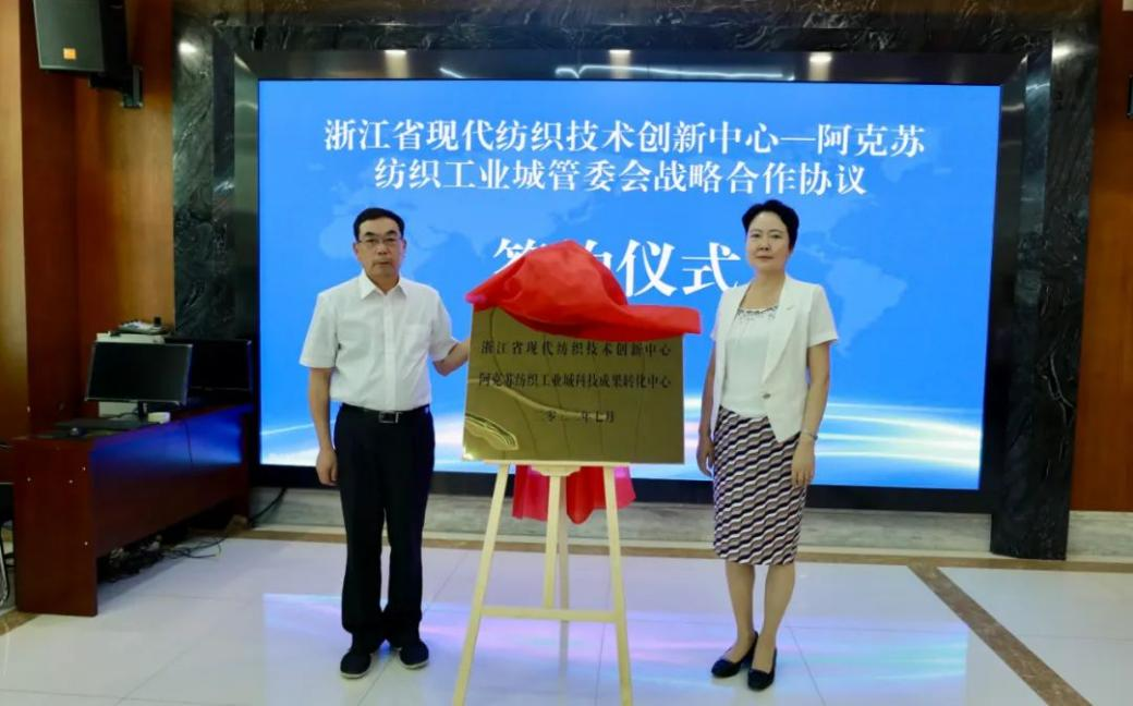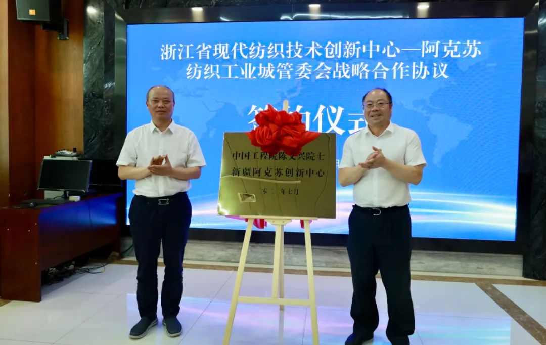 7月20日下午,浙江省现代纺织技术创新中心——阿克苏纺织工业城管委会战略合作协议签约仪式在阿克苏纺织工业城(开发区)举行。
