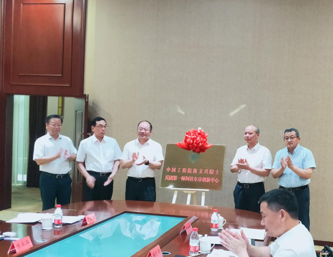 7月21日下午,陈文兴一行到兵团第一师阿拉尔市考察调研,座谈交流,与王忠民共同为“中国工程院陈文兴院士兵团第一师阿拉尔市创新中心”揭牌。