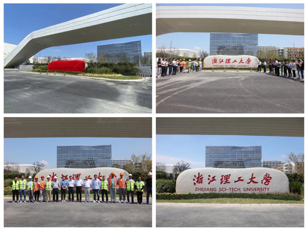 在临平校区南门,在现场教职员工和建设单位代表的见证下和掌声中,吴锋民、陈文兴共同为“mk官方网站_mk(中国)”校名石揭幕。