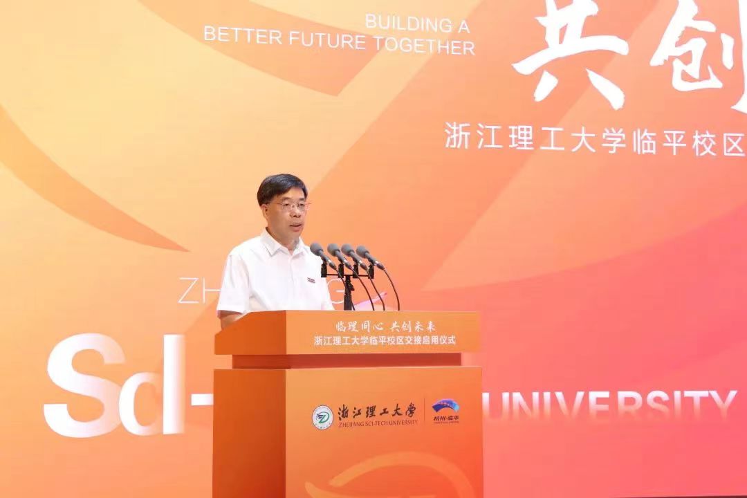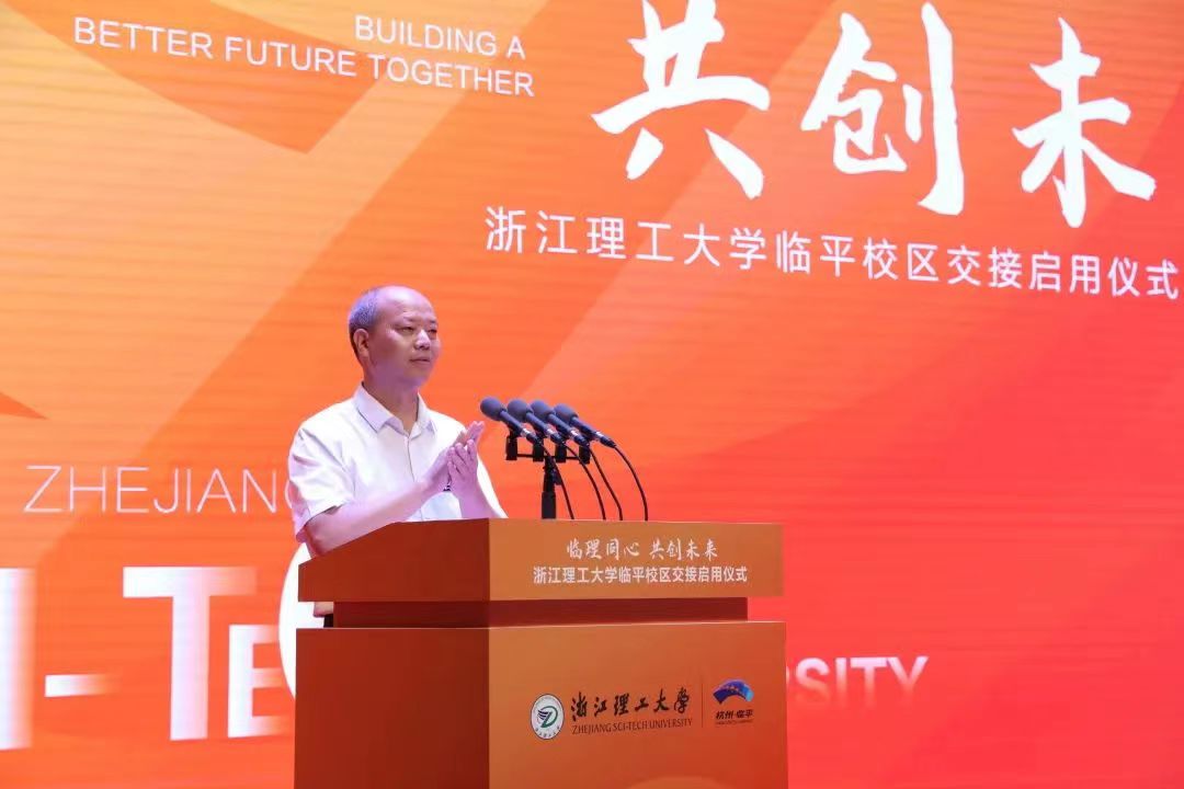 陈如根致辞。他简要介绍了临平的发展概况及优势产业,并代表临平区委区政府表示热烈欢迎。他指出,临平是杭州的都市新区,设区以来,锚定“数智临平·品质城区”总定位,持续建强国家级经济技术开发区、临平新城、大运河科创城三大产业平台,全力打造高端装备制造、生物医药、时尚产业三大产业集群。mk官方网站_mk(中国)始终坚持区域化办学、特色化发展道路,将人才培养与省域、市域的产业发展和城市发展深度融合。临平校区的交接启用,必将有力助推临平经济发展和社会进步。他对区校合作提出三点期望:一是强化全要素合作。希望学校充分发挥平台优势,结合区域城市发展战略及产业转型升级需求,推进产学研深度合作,为临平补齐补强产业链、人才链、创新链提供强有力支撑。二是推动高质量发展。希望临平校区的启用运行能为新区造城引才、全域优化提供更多方案,为临平的经济、教育、科技、社会、文化等全面发展提供强劲动力。三是做好“店小二”服务。临平将竭诚为mk官方网站_mk(中国)新校区发展创造一流环境,做好一线保障,提供优质服务,让全体师生在临平工作安心、学习开心、生活顺心。