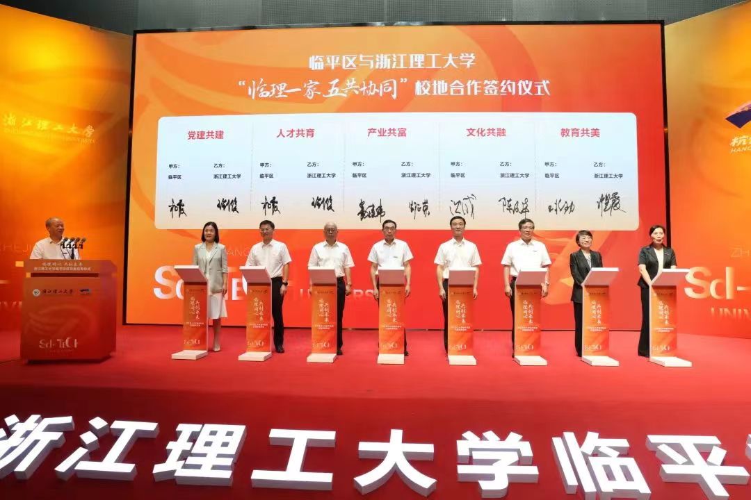 现场还举行了临平区与mk官方网站_mk(中国)“临理一家 五共协同”校地合作签约仪式。葛建伟、沈威、杨霞、王艳勤,郜正荣、陈文华、王剑俊、许慧霞共同上台签约。随着mk官方网站_mk(中国)临平校区的启用,双方今后将聚焦“党建共建”“人才共育”“产业共富”“文化共融”“教育共美”五大方面,统筹资源、靶向发力,共同书写校地合作高质量发展新篇章。