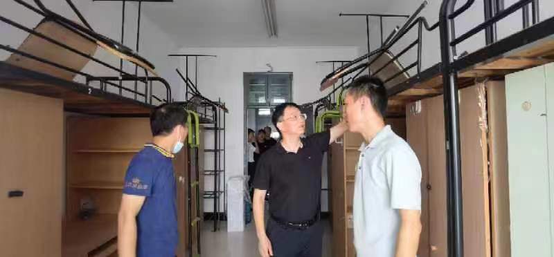 王剑俊一行先后检查了教学区南门门卫、教学区环境和教室、桂花园餐厅、生活一区4号楼等地,全面了解校园疫情防控、校园环境整治、食堂提升改造、新生宿舍维修改造等情况。他认真听取了相关负责人的工作汇报,对新学期开学各项准备工作给予了肯定。