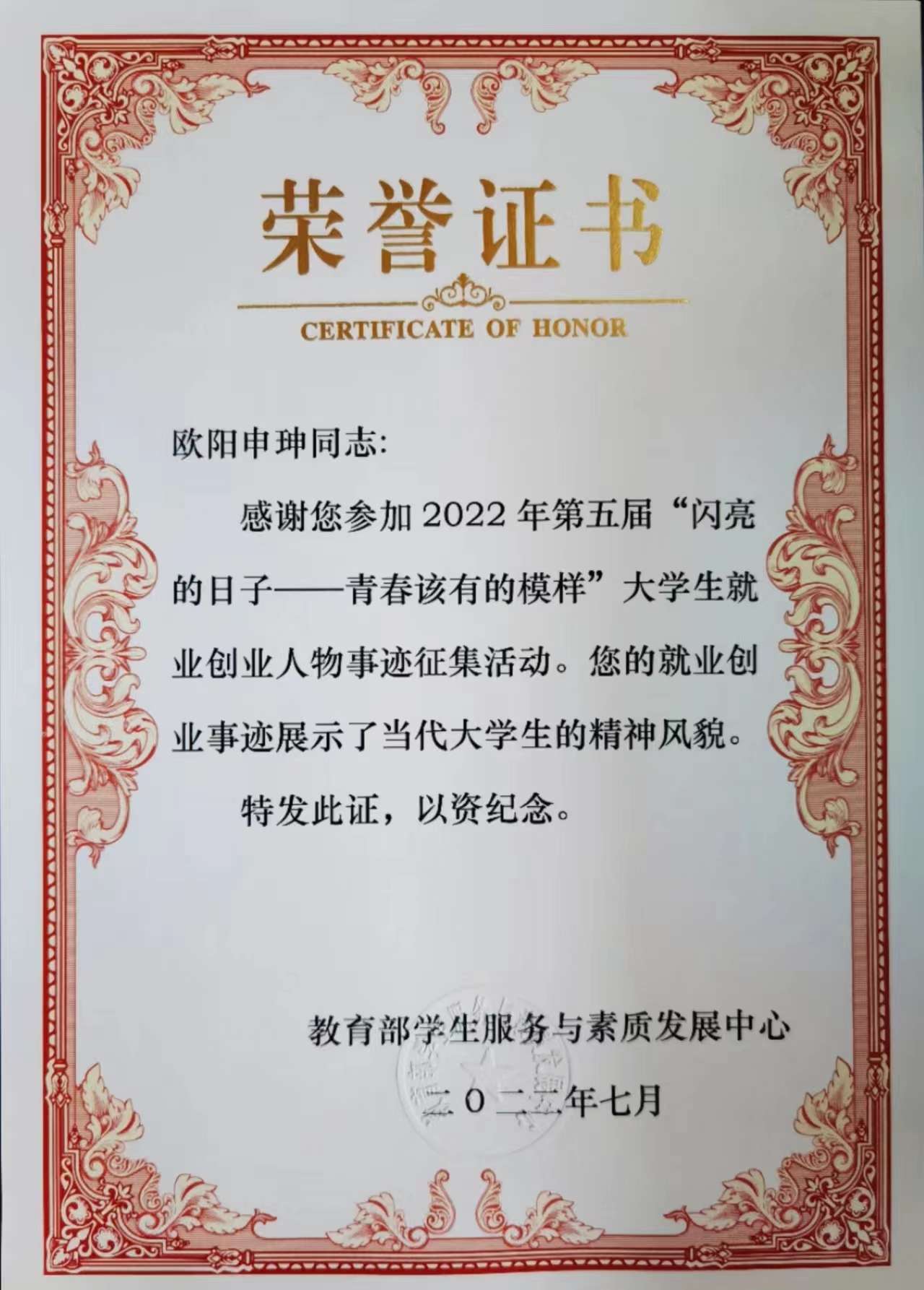 据悉,为迎接党的二十大召开,加强高校毕业生就业创业宣传,教育部举办“闪亮的日子——青春该有的模样”大学生就业创业人物事迹案例征集活动。本次活动共分基层就业、征兵入伍、和创业人物三个类别征集,活动由党委研工部组织上报,经省高校毕业生就业指导服务中心组织专家遴选报送教育部。入选案例将在教育部学生服务与素质发展中心、新职业、学信网等网站宣传后集结出版。
