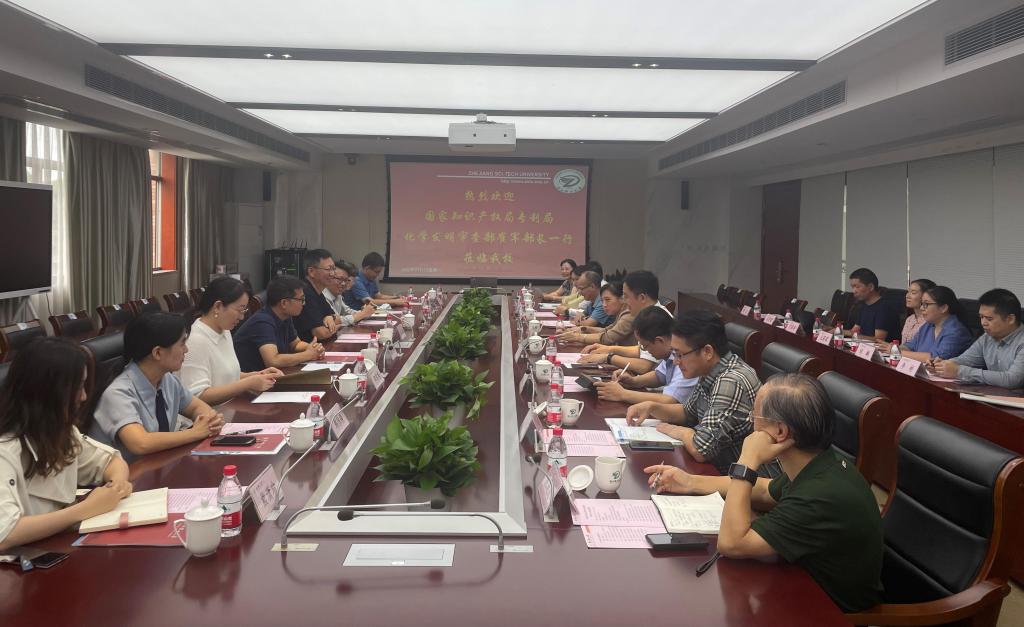 国知局专利局化学发明审查部,校产业技术中心、高校国家知识产权信息服务中心、纺织科学与工程学院(国际丝绸学院)、材料科学与工程学院相关人员参加调研交流会。