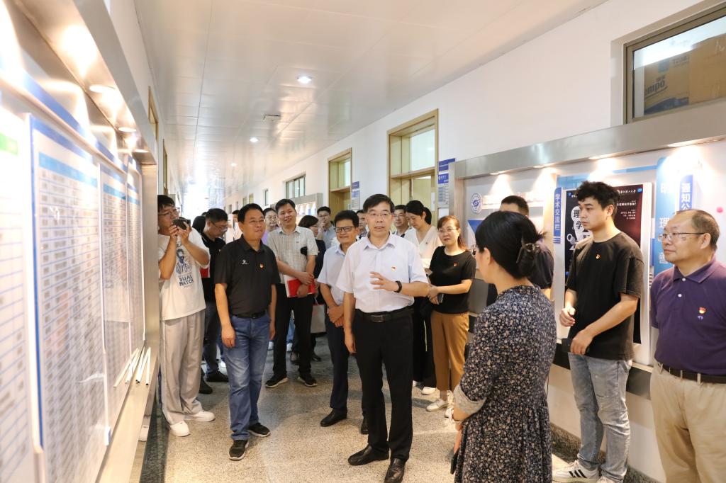 吴锋民一行先后赴理学院、纺织科学与工程学院(国际丝绸学院)实地考察,参观两个学院党建文化长廊、听取推进党建“双创”工作的介绍,深入了解党建“双创”工作思路、建设举措和创建成果。