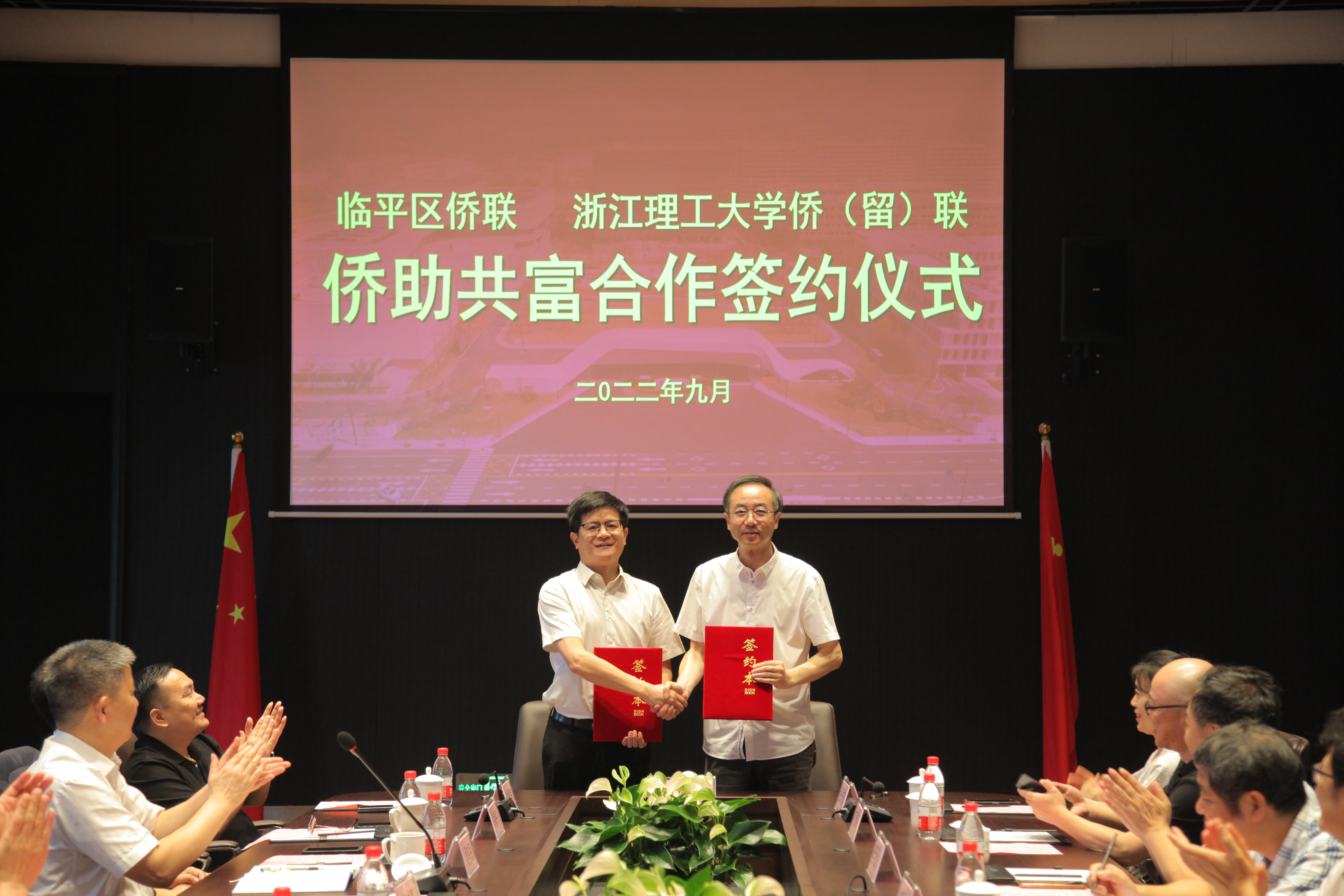 随后,校侨(留)联主席李加林和临平区委统战部副部长、区侨办主任、区侨联主席沈洪亮代表校地双方签订协议。