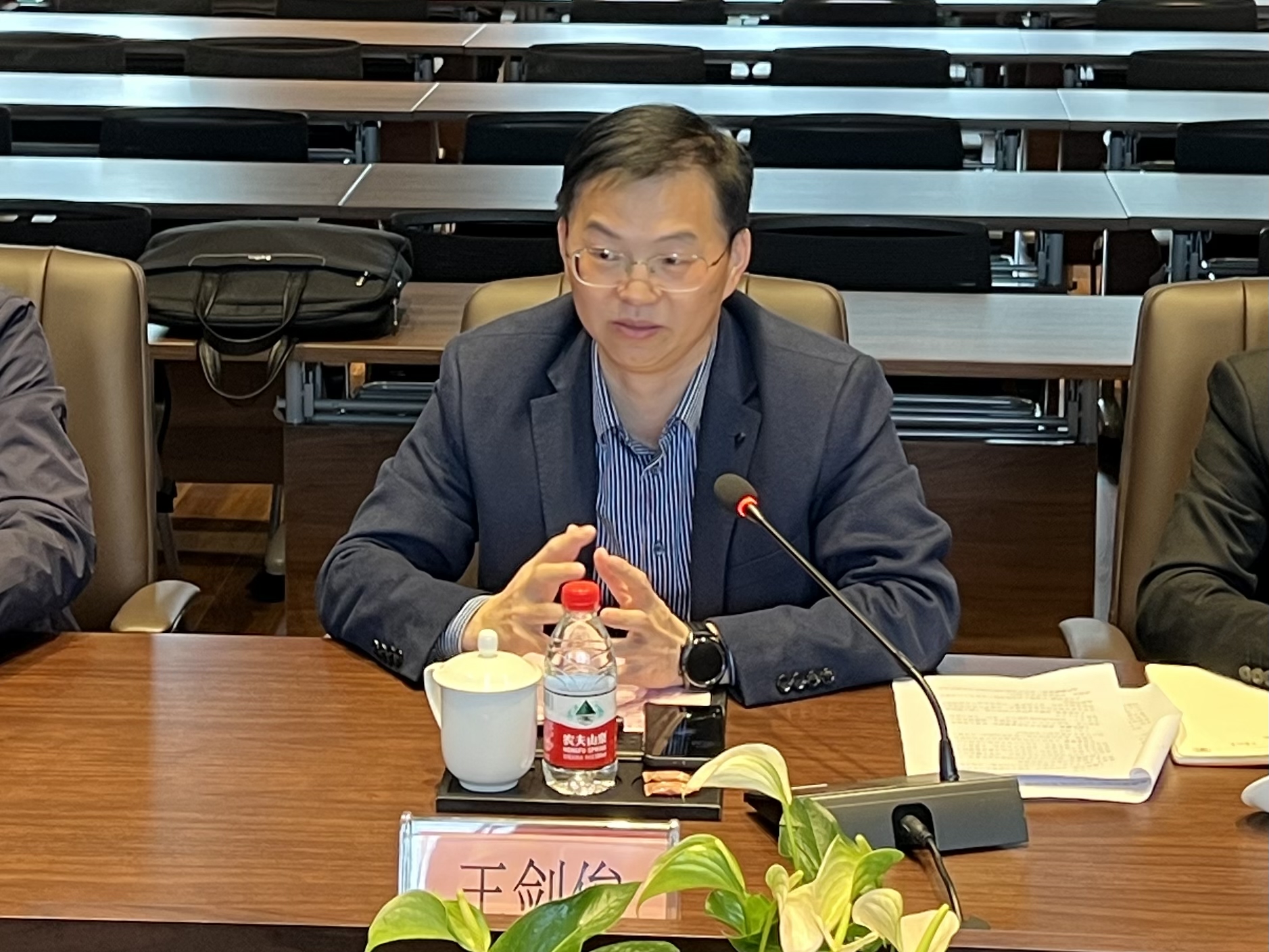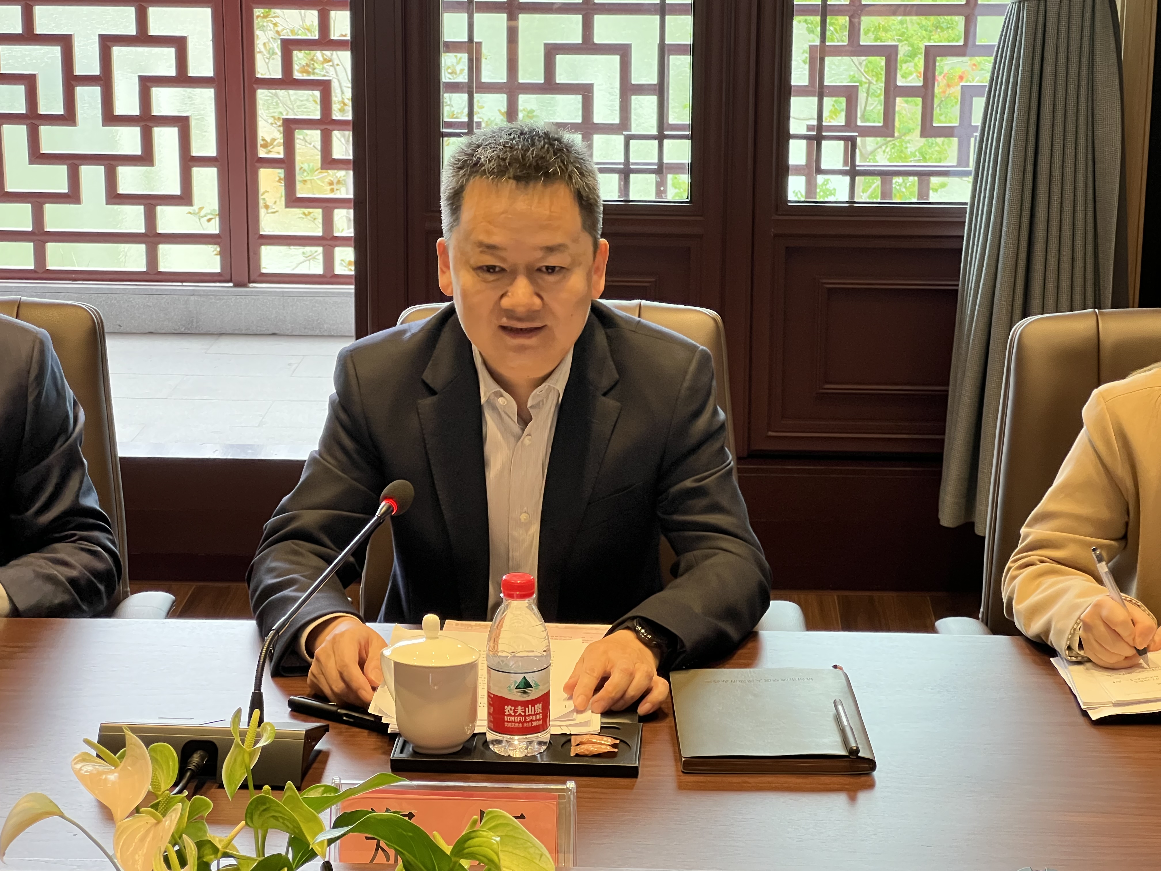 王剑俊致辞。他表示,学校优势特色学科与开发区主导产业契合度高、合作空间大,希望以学校临平研究院为载体,集聚全校科技资源,赋能开发区高质量发展。