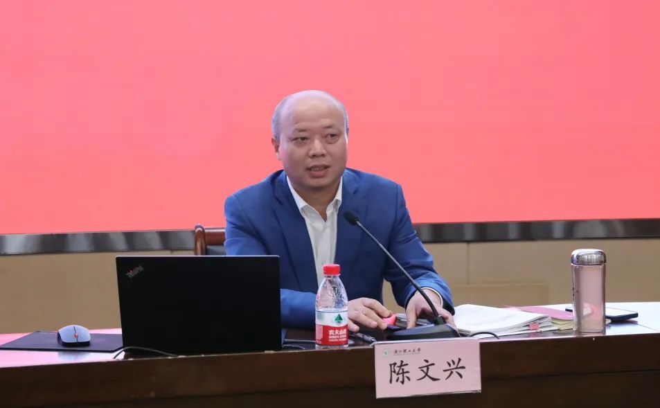 校党委书记吴锋民主持会议,党的二十大代表、校长陈文兴作传达报告。
