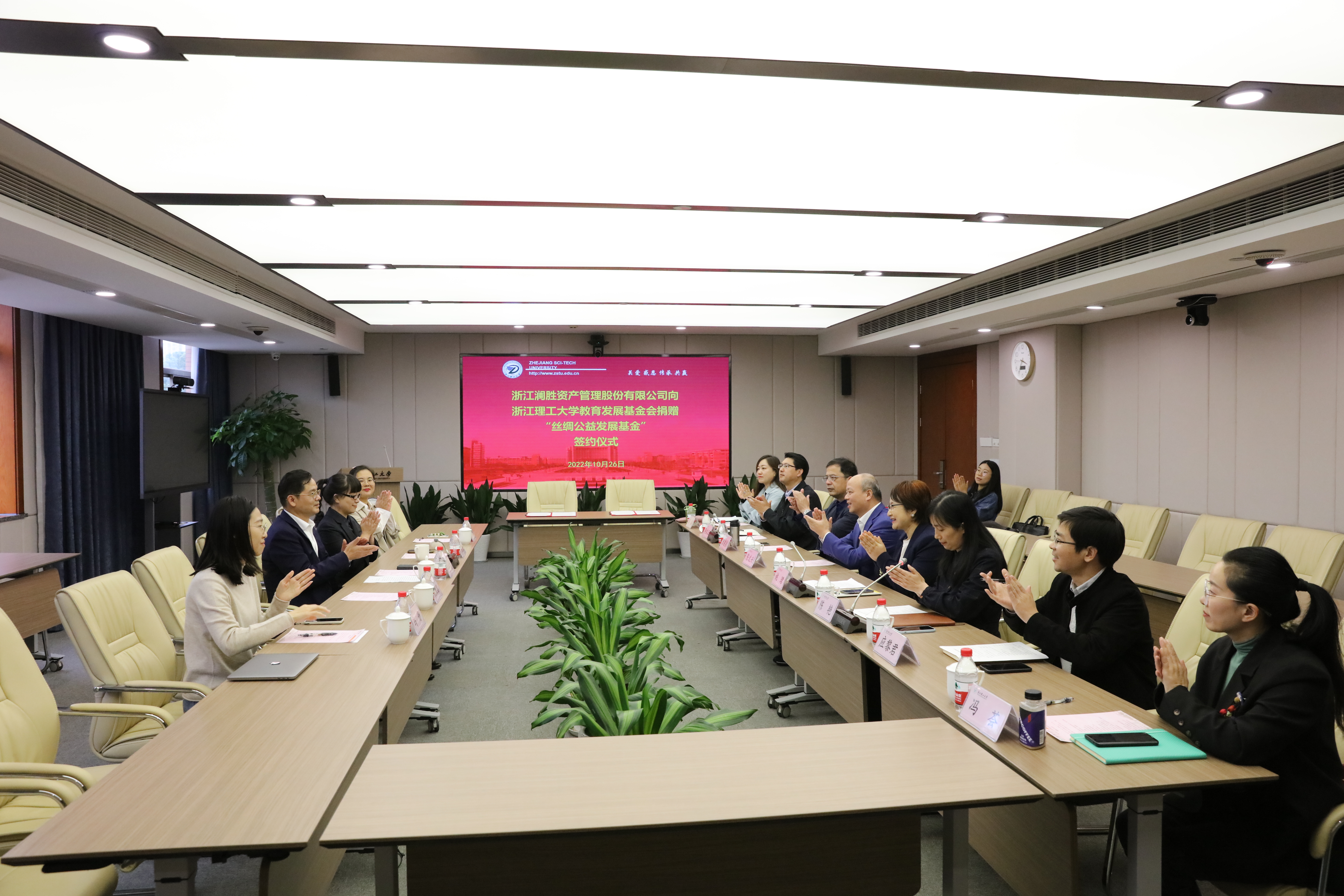 10月26日,浙江澜胜资产管理股份有限公司向mk官方网站_mk(中国)教育发展基金会捐赠200万元签约仪式在下沙校区行政楼217举行,为学校办学125周年献上厚礼!中国工程院院士、校长陈文兴,校党委副书记姚珺,教育发展基金会理事长陈建勇,浙江澜胜资产管理股份有限公司、浙江信伊达实业股份有限公司董事长顾新荣,公司董事陈薇薇,公司常务副总裁程维国出席。