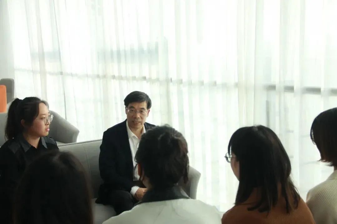 学习会结束后,吴锋民还与结对党支部——服装学院产品设计纺织品艺术设计学生党支部新一任支委会成员进行交流座谈。