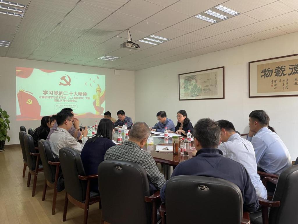 为进一步深入学习贯彻党的二十大精神,切实把思想和行动统一到习近平总书记重要讲话精神和党中央决策部署上来,11月10日下午,计算机科学与技术学院(人工智能学院)党委理论学习中心组专题学习会在10号楼315会议室召开。副校长王剑俊到会巡听指导。