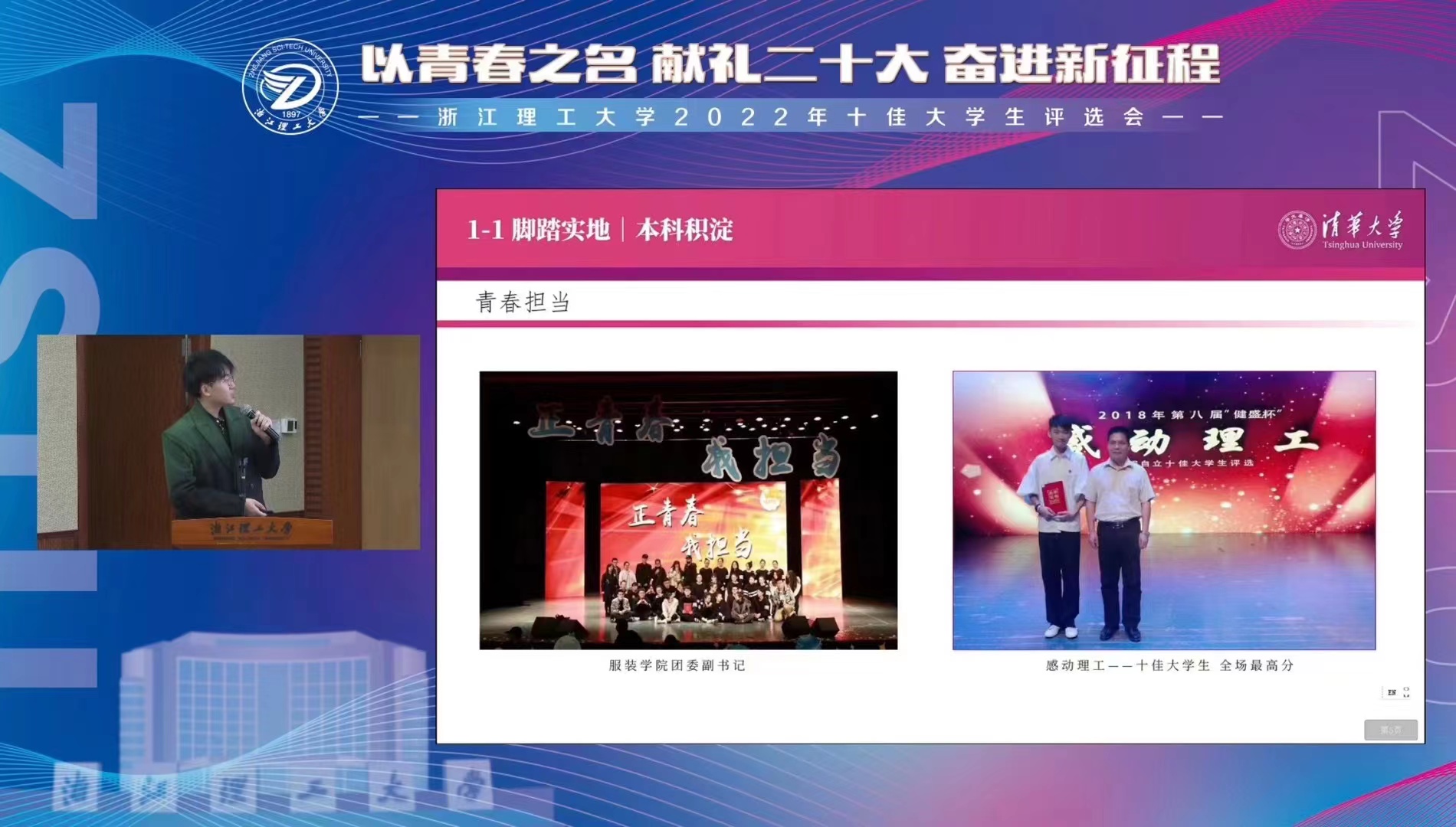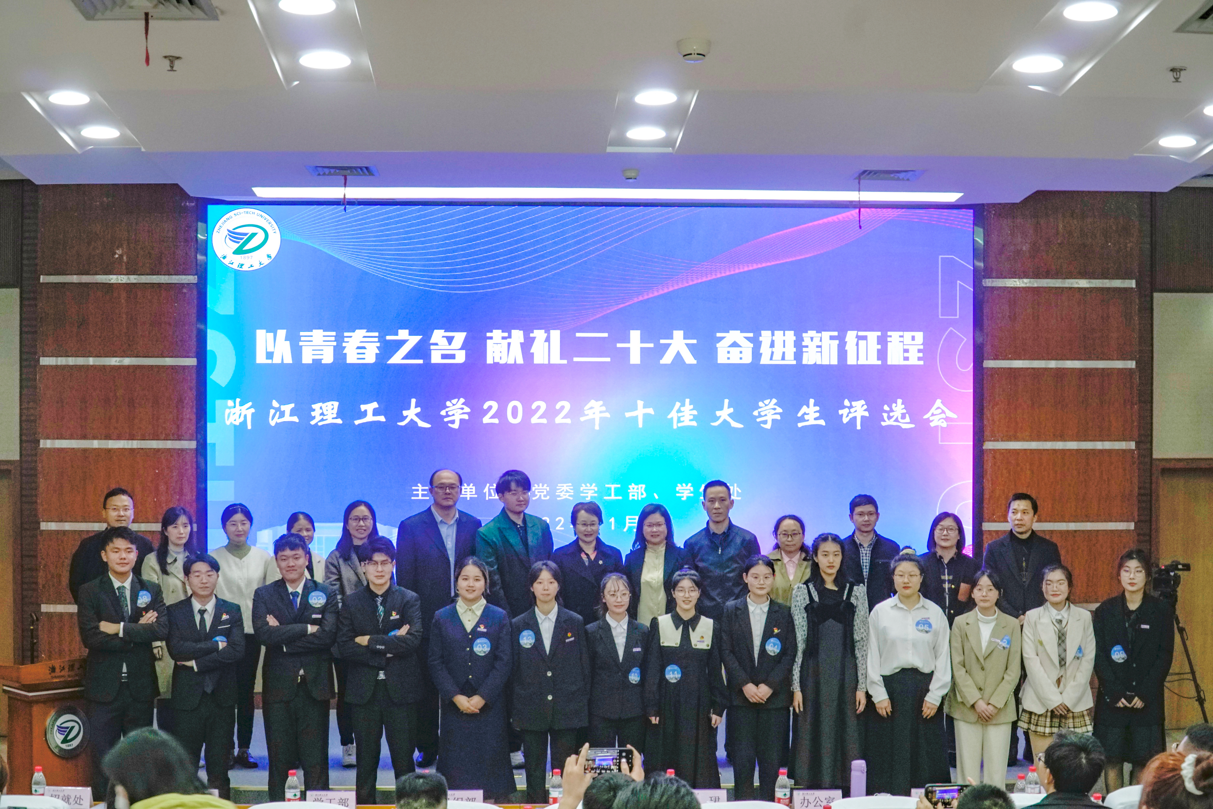 评选会现场,15名优秀的浙理学子展示了新时代浙理青年的精神面貌,用拼搏奋斗的事迹诠释了理工学子精神。十佳大学生候选人中,有潜心科研,一作发表SCI二区论文,在多元视角中取得收获的科研达人;有深耕低碳节能发展之路,潜心“冷”门研究,期待在低碳前沿技术中实现别样成长的靠谱青年;有把法治责任扛在肩上,法治行动落在脚下,充满使命感和社会责任感的后起之秀;有出身贫寒、立志深耕电力行业,用青春诠释新时代“山海情”的励志典范。15名候选人全面发展,乘风破浪,榜样引领,在学科竞赛、学生工作、志愿服务和文体竞赛等领域不断挑战自我,实现超越。15名候选人追光逐梦、全员保研,推免至浙江大学、北京师范大学、重庆大学等双一流院校攻读研究生。