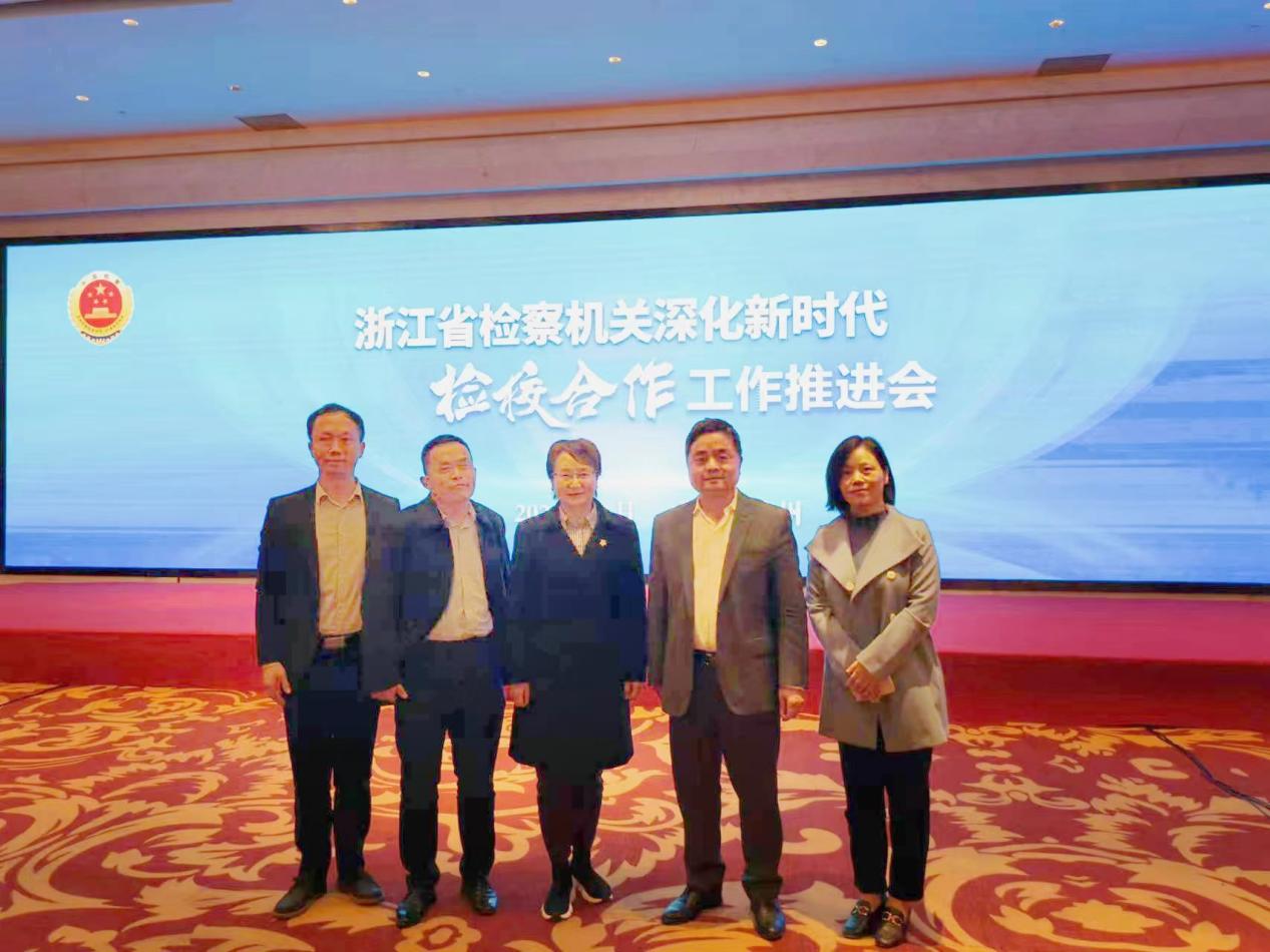 11月22日下午,由浙江省检察院举办的“深化新时代检校合作工作推进会”在浙江望湖宾馆举行。此次会议的主题为“深化检校合作,推进深度融合”。推进会由浙江省人民检察院党组副书记、常务副检察长黄生林同志主持。浙江省人民检察院党组书记、检察长贾宇,浙江省委政法委常务副书记、省法学会党组书记、常务副会长朱晨,浙江省教育厅党委委员、副厅长于永明,浙江省委组织部干部四处副处长许跃峰,浙江省检察院政治部主任胡梅奎等领导出席本次推进会并作重要讲话。