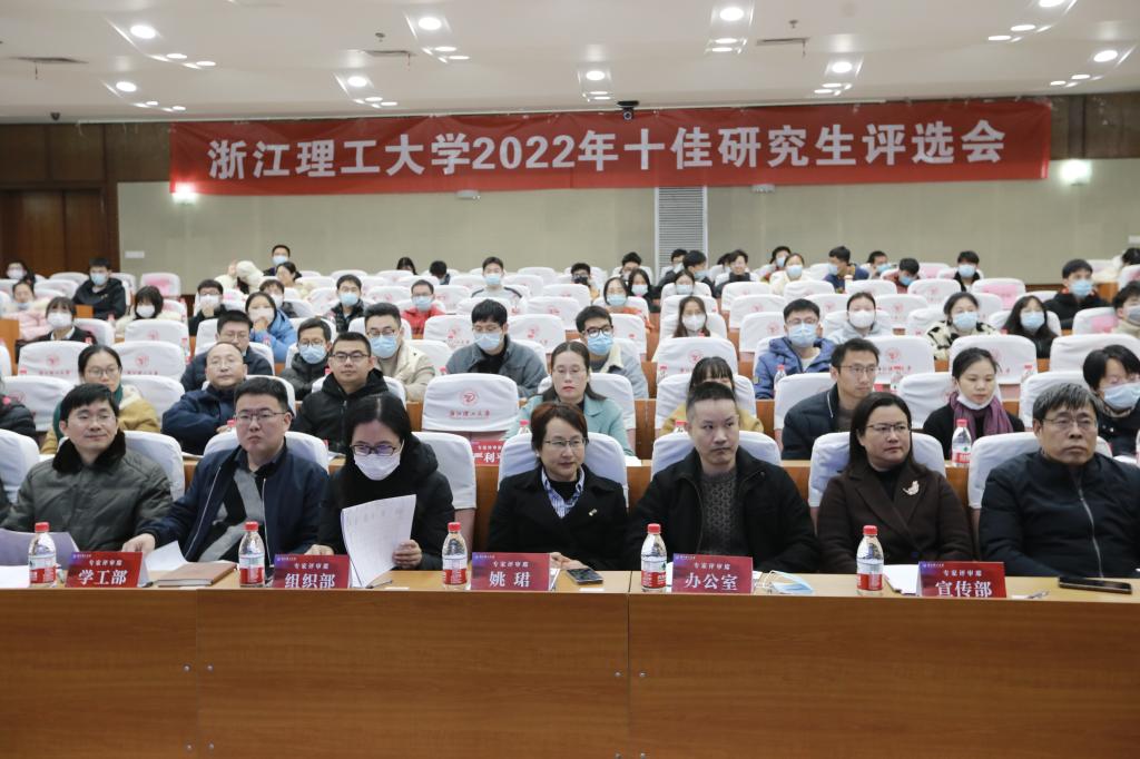 评选会现场,17名硕博研究生候选人通过PPT路演、视频展示等方式,展现了我校研究生奋发图强、勇于奉献的精神面貌。他们当中有的人潜心科研,研深悟真,第一作者发表多篇top期刊论文,总影响因子超过30;有的人驰骋赛场,敢于亮剑,在“挑战杯”全国大学生课外学术科技作品竞赛、中国研究生创新实践系列大赛中获得一等奖;有的人热心公益,坚持捐助贫困儿童,累计无偿献血50次,获得全国无偿献血奉献金奖;还有人勇于担当,志愿服务疫情防控第一线。星辰大海、踔厉奋发、守正创新、勇毅前行,17位候选人在学术科研、学科竞赛、学生工作、志愿服务和疫情防控中挑战自我,不断超越,是“浙理”研究生的学习榜样。