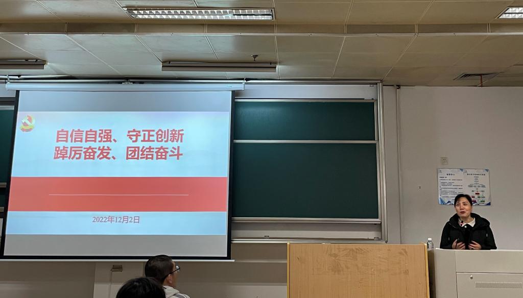 课堂上,许慧霞围绕“自信自强、守正创新,踔厉奋发、团结奋斗”的鲜明主题展开,以陈文兴校长作为党的二十大代表光荣参会的事迹引入,精彩讲述“党的二十大的基本概况”、“学习贯彻党的二十大精神的重要意义”、“全面准确学习领会党的二十大精神”三个方面内容,结合自身分管的教学工作,深入浅出,条理清晰地对党的二十大精神进行系统宣讲和深入解读。