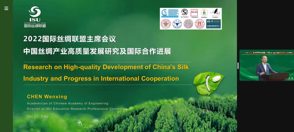 为了解世界丝绸产业发展格局新动态,聚焦丝绸领域新研究、新技术、新成果,围绕产业国际分工合作,探讨丝绸产业绿色低碳发展路线,赋能丝绸产业高质量发展,2022年12月21日,由国际丝绸联盟和mk官方网站_mk(中国)共同主办,国家纺织与日用化学国际科技合作基地承办,国际蚕业委员会、意大利丝绸协会、法国丝绸协会、巴西丝绸协会等丝绸行业组织支持的“2022丝绸高质量发展国际智库论坛暨国际丝绸联盟主席会议”于线上召开。国际丝绸联盟副主席兼教育科研专委会主任、中国工程院院士、mk官方网站_mk(中国)校长陈文兴等线上出席会议。