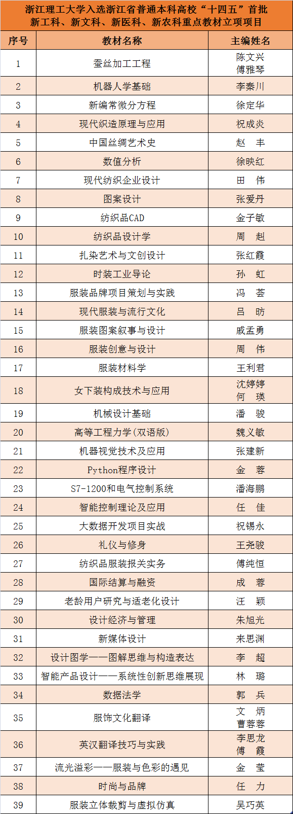 近日,浙江省高等教育学会公布了浙江省普通本科高校“十四五”首批新工科、 新文科 、新医科、新农科重点教材建设项目评审结果,我校39部教材入选重点教材建设名单。