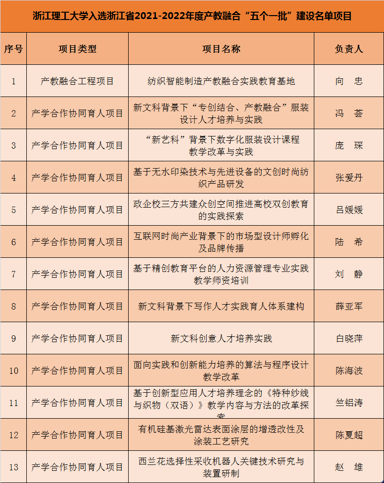 近日,浙江省2021-2022年度产教融合“五个一批”建设名单公布,我校获批产教融合工程项目1个、产学合作协同育人项目12个。