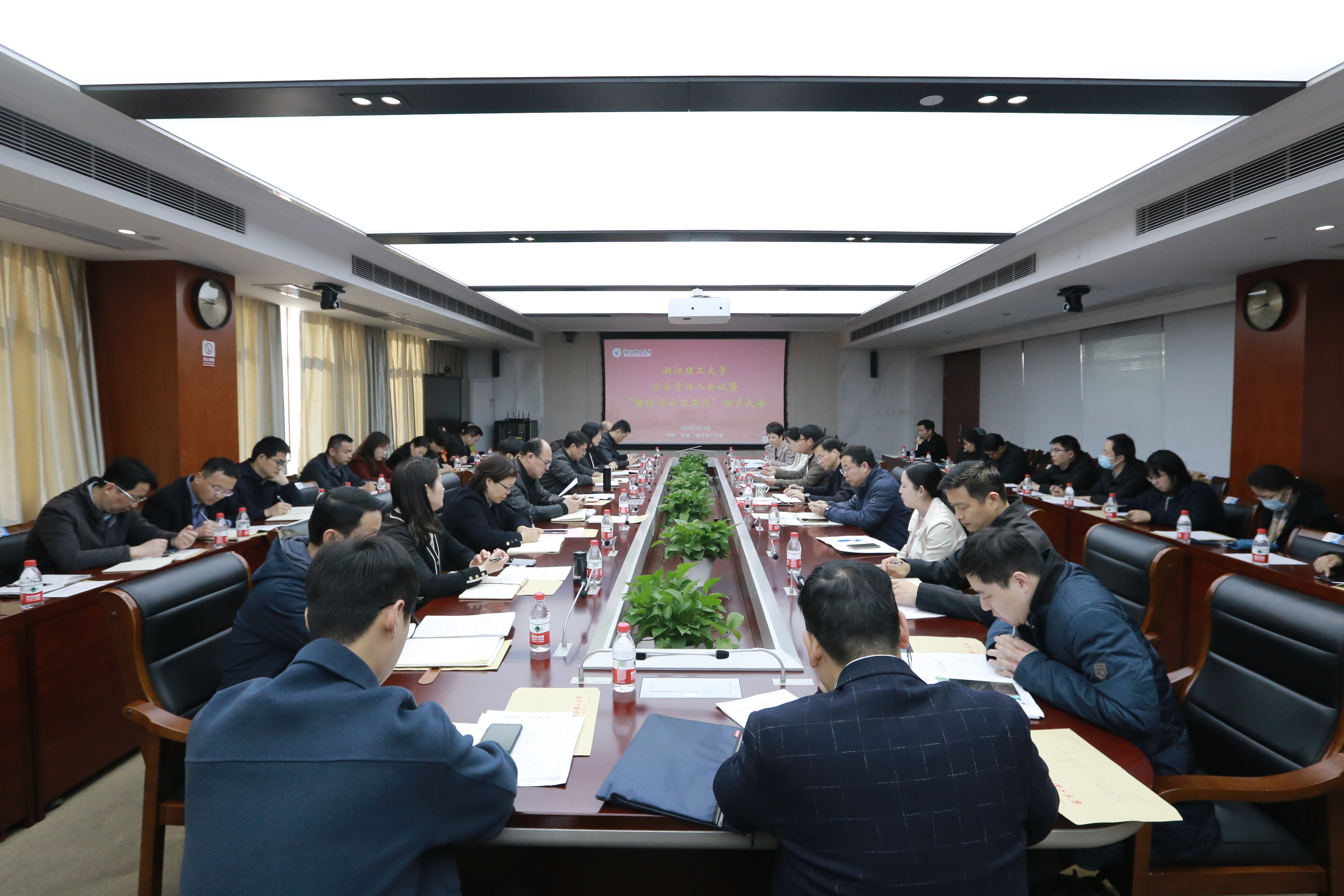 3月14日上午,我校安全责任人会议暨“除险保安迎亚运”动员大会在行政楼215会议室召开。副校长王剑俊出席会议,各单位安全责任人参加会议。