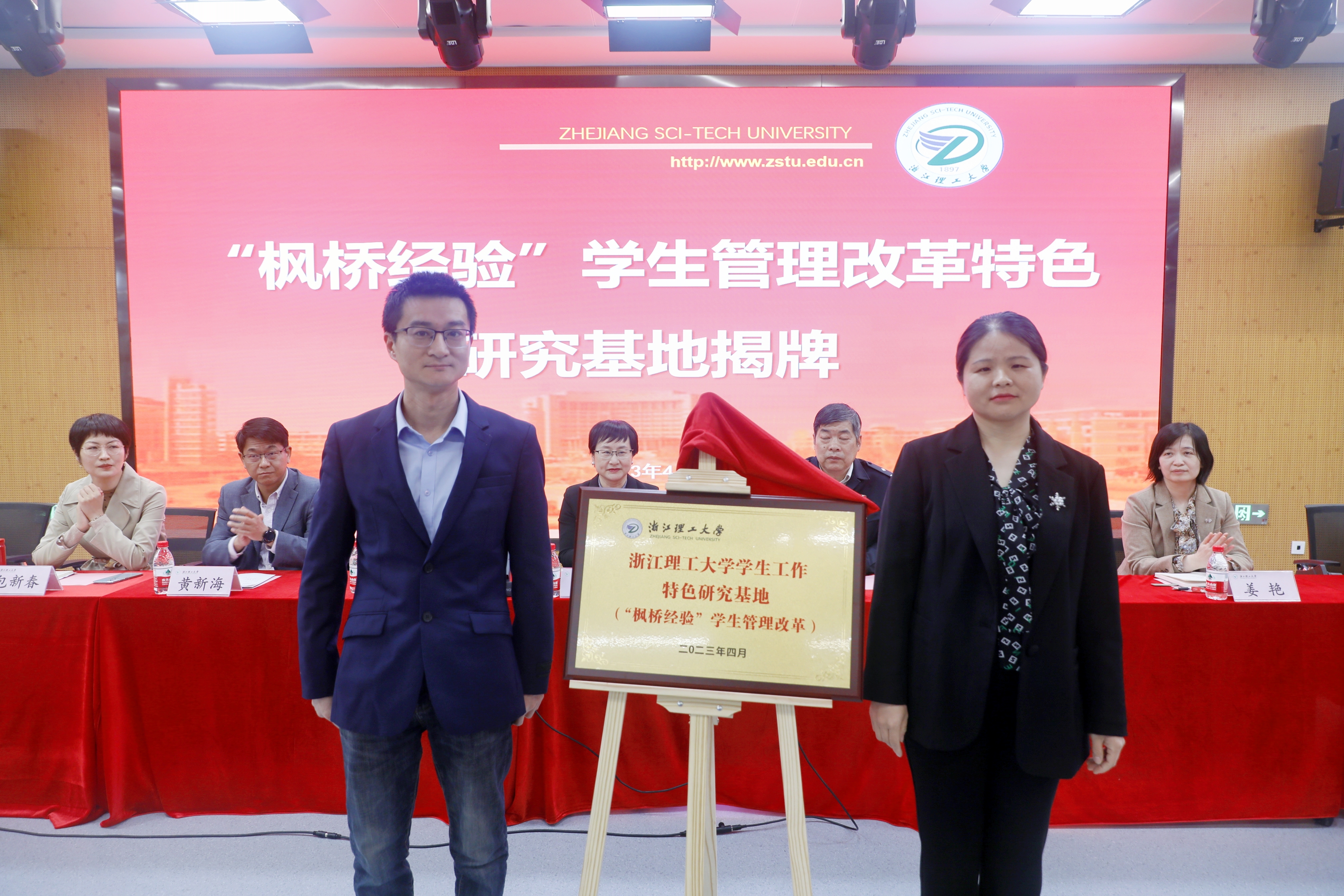 活动中,党委学工部发布了《mk官方网站_mk(中国)临平校区“一站式”学生社区综合管理模式建设实施方案》,自2022年我校获批教育部“一站式”学生社区综合管理模式建设自主试点单位,通过顶层设计、探索研究、经验借鉴,逐步形成一套高效的管理体系。为延伸“一站式”学生社区的教育阵地,我校与诸暨市枫桥镇共建“枫桥经验”学生管理改革特色研究基地,仪式上,由研工部副部长冯飞芸和绍兴市枫桥镇组织委员郦栋材作为代表为基地揭牌。