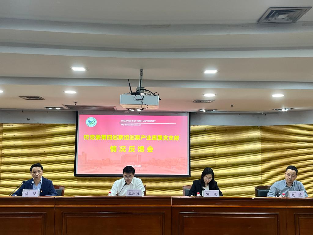 4月19日上午,校党委第四巡察组巡察产业直属党支部反馈会在行政楼一楼报告厅召开。校党委委员、副校长王剑俊出席会议。