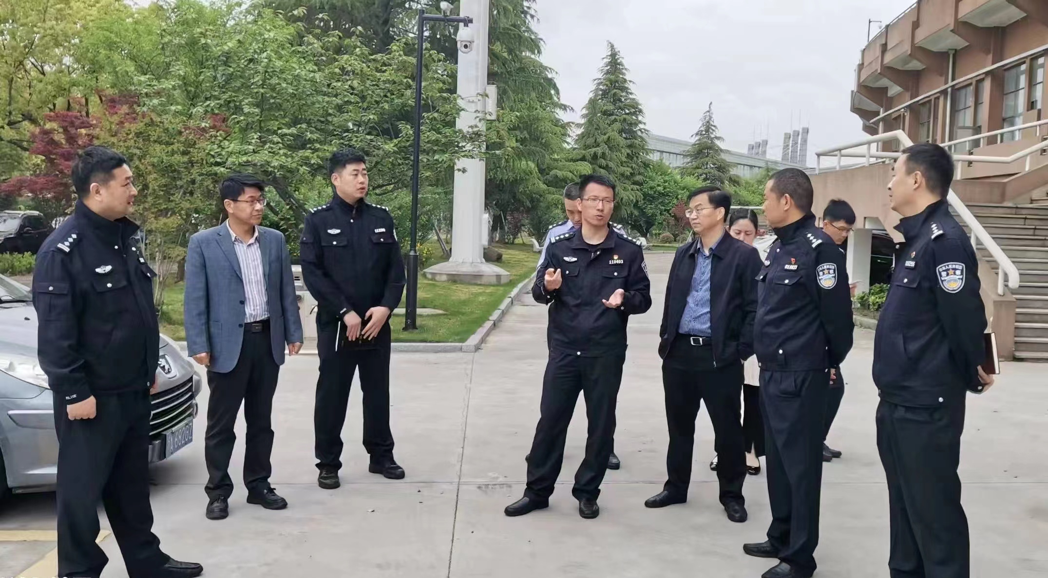 4月23日上午,杭州市公安局钱塘区分局常务副局长黄涛、治安大队教导员庄建伟、交警大队指挥中心主任陈涛一行来校,实地检查和指导我校亚运足球训练场安保工作推进落实情况。副校长王剑俊,保卫处、公管处负责人陪同检查。