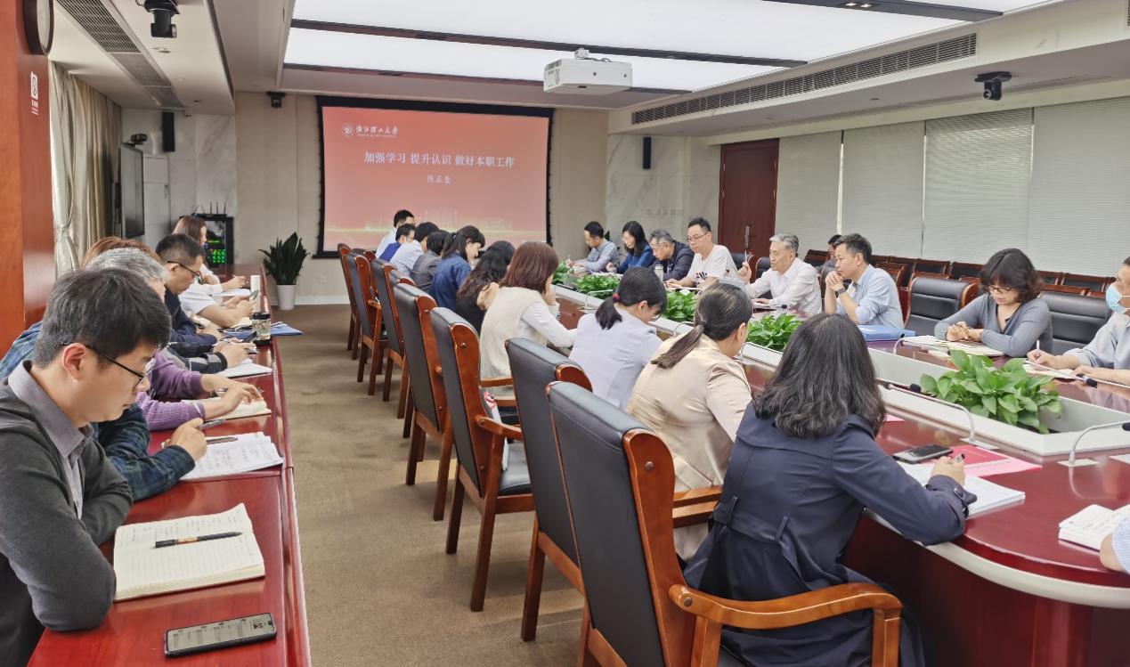 陈正奎以“加强学习、提升认识,做好本职工作”为主题,讲授了一场生动、深刻的党课。他深入阐述了学习贯彻习近平新时代中国特色社会主义思想主题教育的总要求、根本任务、具体目标和纪检监察干部教育整顿“五学”的内涵要求,勉励大家要带着思考学、贯通融合学、结合实际学,把学习成果落实到思想和行动上;他深情回顾了父辈见证新旧中国巨变而对党怀有的朴素真挚情感,并通过互动问答和较多的视频案例,生动解读了我国取得的历史性成就和面临的严峻国际形势,要求大家要提高认识、提升站位、增强信心,做政治上的明白人、干事创业的引路人,结合监督执纪问责工作实际,坚决做到“两个维护”。他强调,全校纪检监察干部要学深悟透新思想,忠诚履行党章赋予的职责,精准定位、强化规范、端正作风、严守纪律,着眼学校发展,勤廉并重、勇善斗争、提质增效,为学校事业发展提供坚强保障。