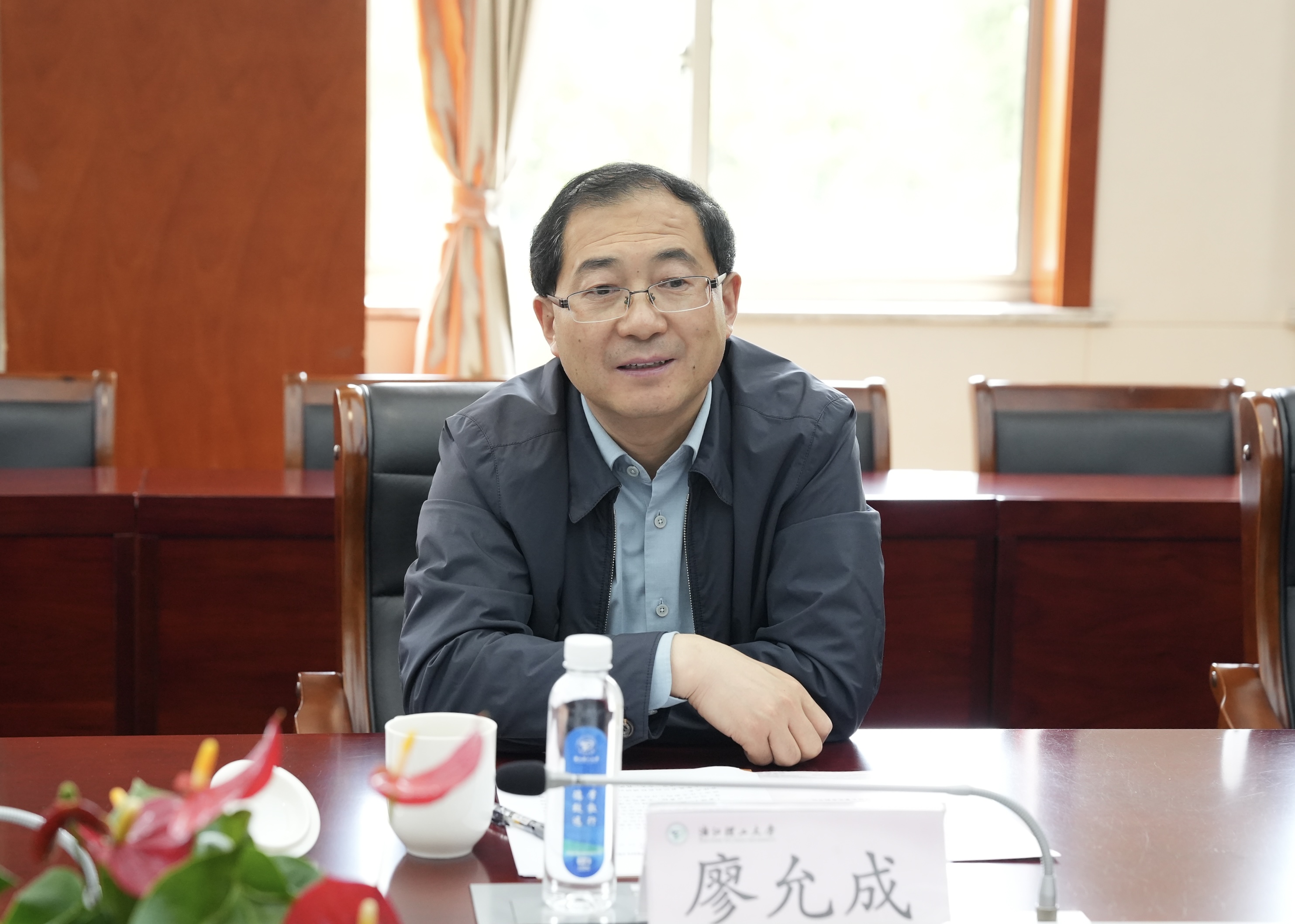 廖允成对我校的热情接待表示感谢。他介绍了山西农业大学办学历史和发展现状,并指出两校都是省属院校,办学规模相近,在党建和思政方面有很多值得相互学习的地方,希望能继续保持紧密的合作关系。