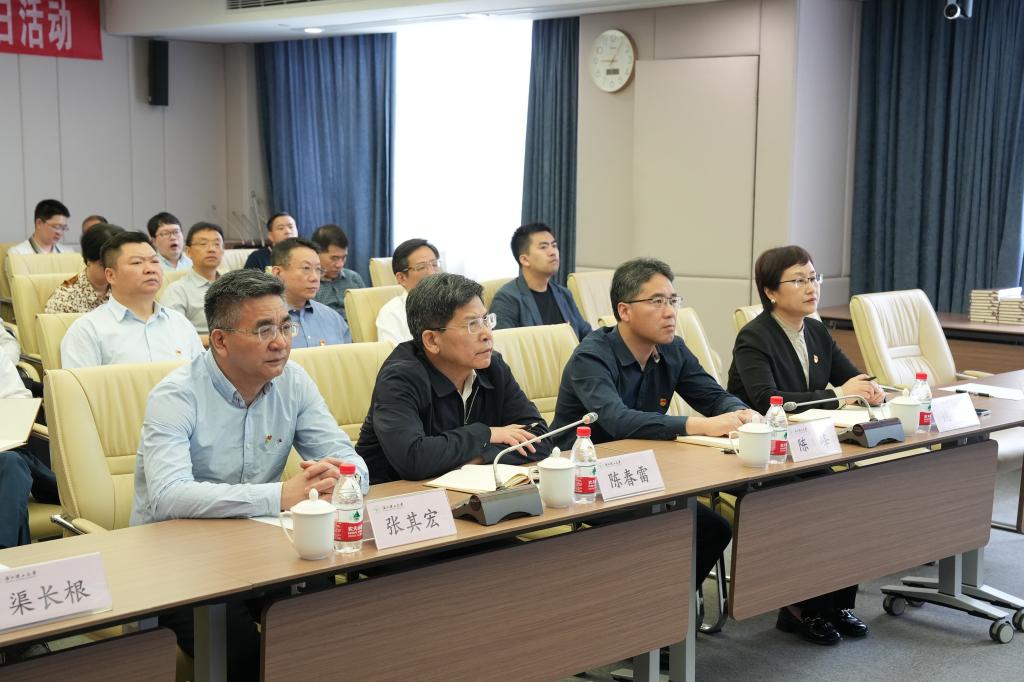 为进一步推动主题教育走深走实,5月5日上午,省教育厅来我校开展了“循迹溯源学思想促践行”。省委教育工委专职副书记、省教育厅党组副书记陈春雷,省教育厅党组成员、副厅长陈峰,省教育厅二级巡视员张其宏,机关各处室和直属单位部分党员干部参加活动。