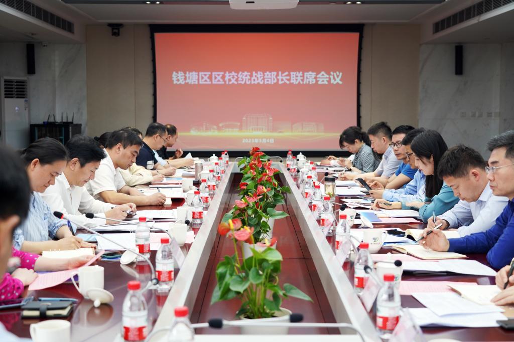 为全面贯彻落实党的二十大精神,深入开展学习贯彻习近平新时代中国特色社会主义思想主题教育,贯彻落实习近平总书记关于做好新时代党的统一战线工作的重要思想和中央、省、市统一战线重要会议精神,充分发挥钱塘区和区内高校自身特色优势,深入开展“大调研大走访大服务大解题”活动,进一步推动区校统战融合发展。5月4日上午,2023年钱塘区首场区校统战部长联席会议在首任轮值主席单位mk官方网站_mk(中国)举行。