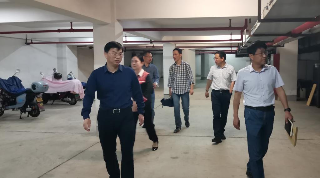 王剑俊一行实地查看了行政楼地下车库和6号楼、7号楼架空层的相关情况,详细了解了“除险保安迎亚运”楼宇安全隐患排查整治工作推进情况,就楼宇架空层公共空间的规划利用问题与相关学院负责人进行了交流。