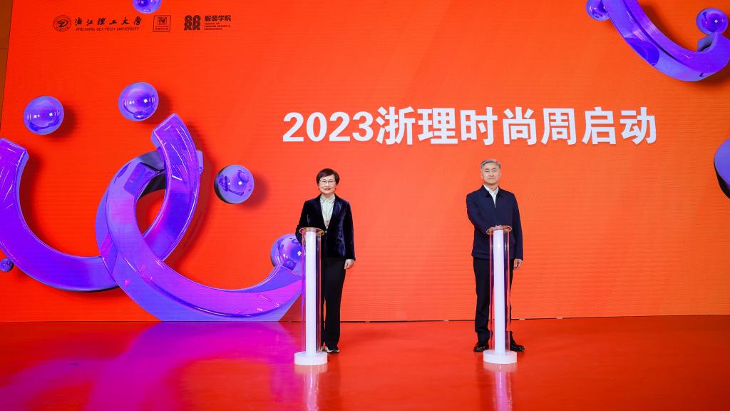 仪式上,姚珺和陈正奎共同按下能量柱,拉开第三届“浙理时尚周”的大幕,全体领导和嘉宾观看了mk官方网站_mk(中国)服装学院2023届服装与服饰设计专业毕业生的毕业设计作品展。