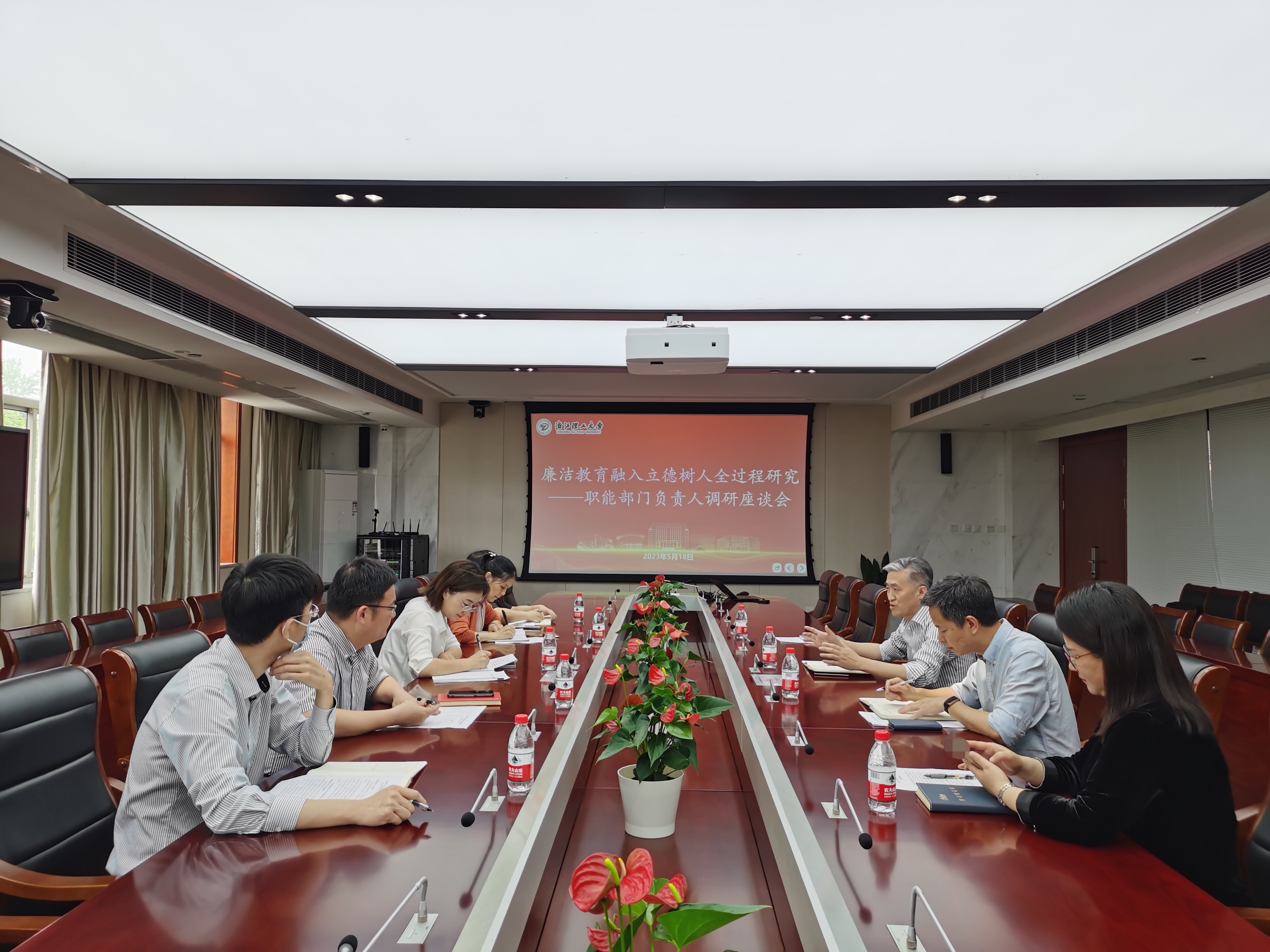 会议紧紧围绕廉洁教育融入立德树人全过程研究主题,紧扣“入心入脑”,开展分析研讨,共商实施方案。与会相关人员立足所在部门职责,交流了开展大学生廉洁教育的结合点和具体设想。