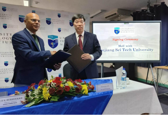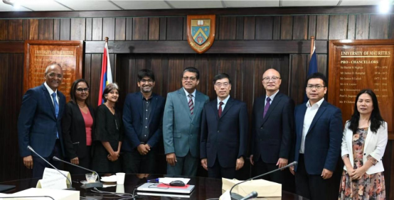 在毛里求斯技术大学访问期间,代表团会见了该校校长迪纳什、教务长达旺蒂、和各学院院长,双方在前期接触的基础上,就在毛里求斯技术大学开设汉语教学点的合作计划进行了进一步讨论,并就全面开展校际合作达成一致意见。双方商定,将在学生交流、教师互派、项目合作、机构与平台建设四个领域依次推进,开展互利共赢的实质性合作,稳步提升交流合作的层次与水平。根据会谈内容,吴锋民和迪纳什代表双方学校,签署了校际合作备忘录。