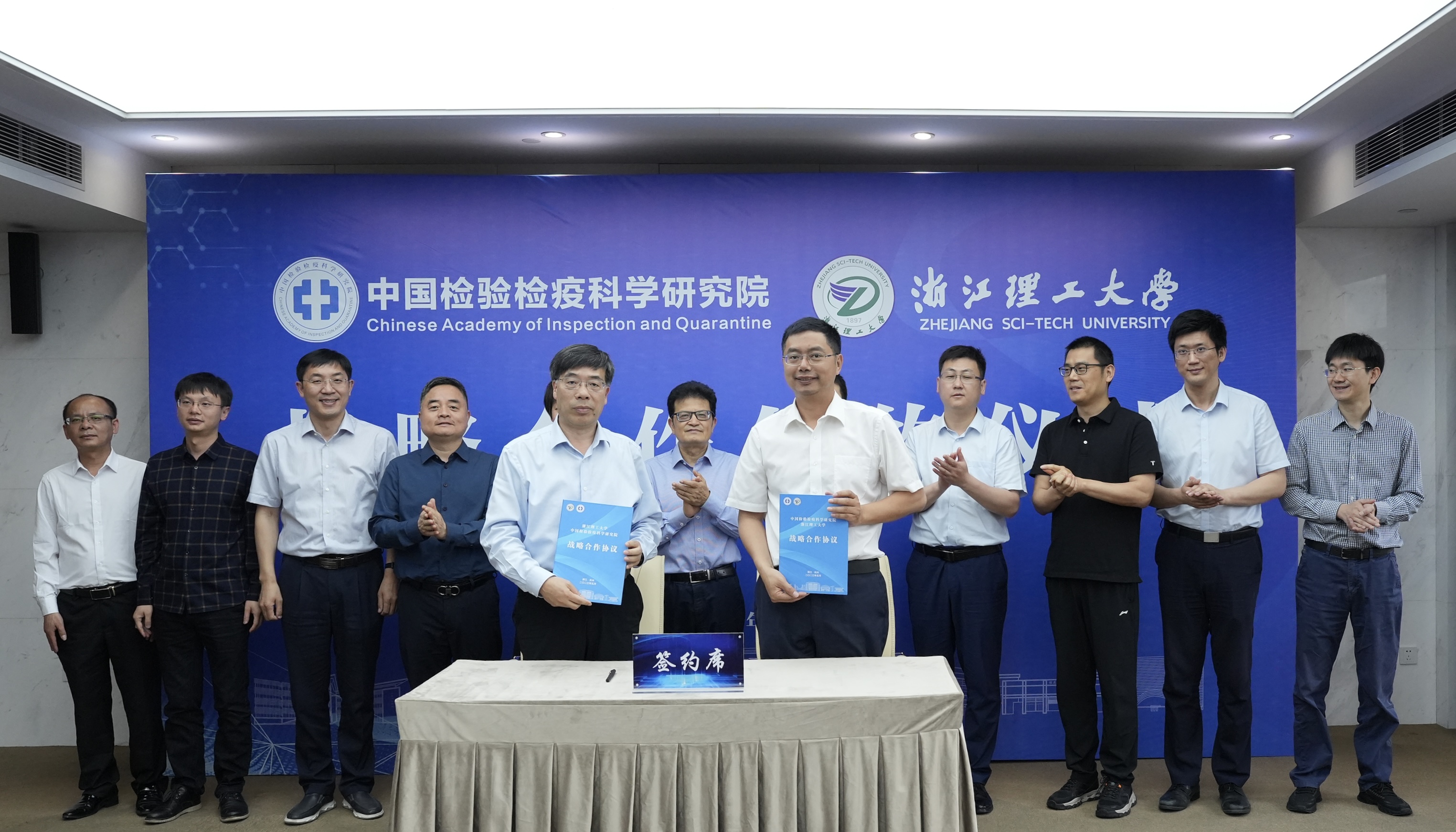 为全面实施创新驱动发展战略,充分发挥资源优势,深化科研平台共建、成果转化共享、研究人才共育、国际合作共进等方面的交流合作,5月24日上午,我校与中国检验检疫科学研究院(以下简称“中国检科院”)战略合作签约仪式在下沙校区举行,中国检科院党委书记杨万山、校党委书记吴锋民出席仪式并讲话。校党委副书记陶伟华主持仪式。