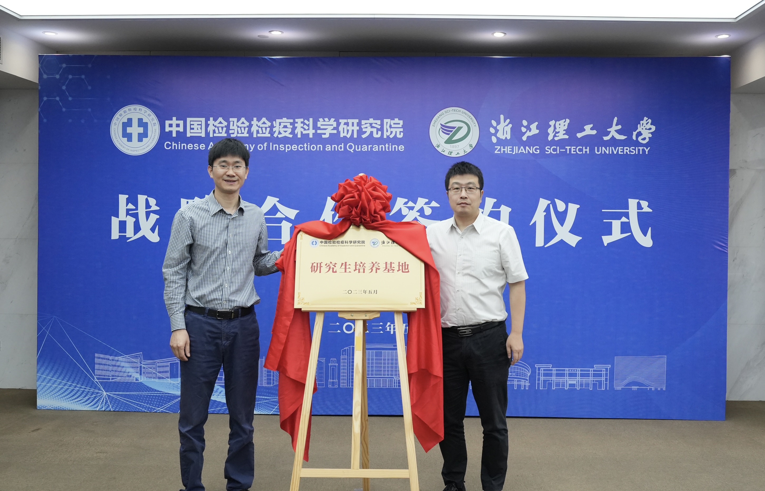 在与会人员的共同见证下,杨万山和吴锋民共同签署《中国检验检疫科学研究院 mk官方网站_mk(中国)战略合作协议》。中国检科院党群工作部主任李翔与校研究生院副院长徐阿进为研究生培养基地揭牌。