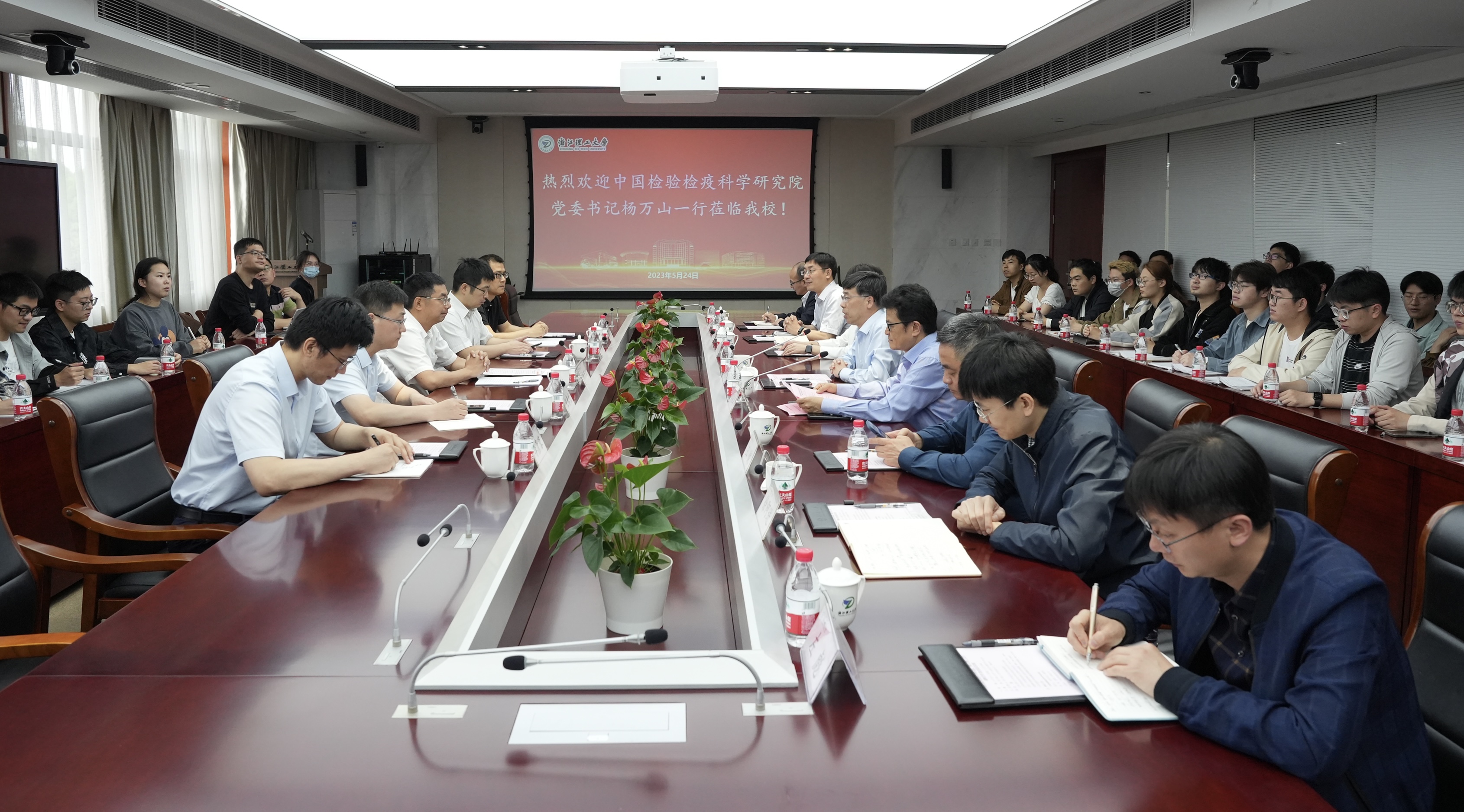 杨万山介绍了中国检科院作为国家级科研机构的历史渊源和职责使命,以及食品、工业和消费品与生物三大重要研究领域的发展特色。他表示,校院双方已有坚实的科研合作基础,并取得了积极成效。接下来,希望双方进一步深化合作的目标、机制和内容,补齐短板、扩大优势,结出更多丰硕成果,共同助力高水平科技自立自强。