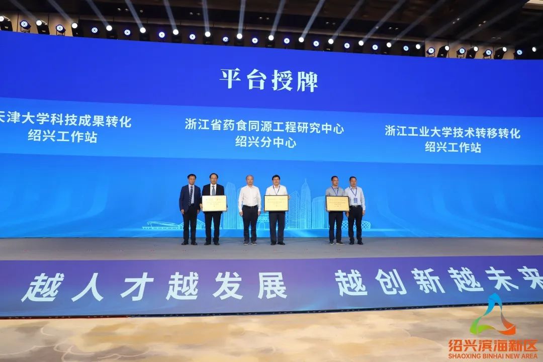 开幕式上,举行了重要平台授牌仪式、人才科技项目签约仪式、相关人才及企业颁奖仪式、特聘专家聘任仪式、重点平台及赛事启动仪式。绍兴生命医药研究院杨东风教授作为省级领军人才,获聘滨海新区特聘专家。陈文兴为绍兴生物医药研究院授牌,浙江省药食同源工程研究中心绍兴分中心正式落户绍兴生物医药研究院。