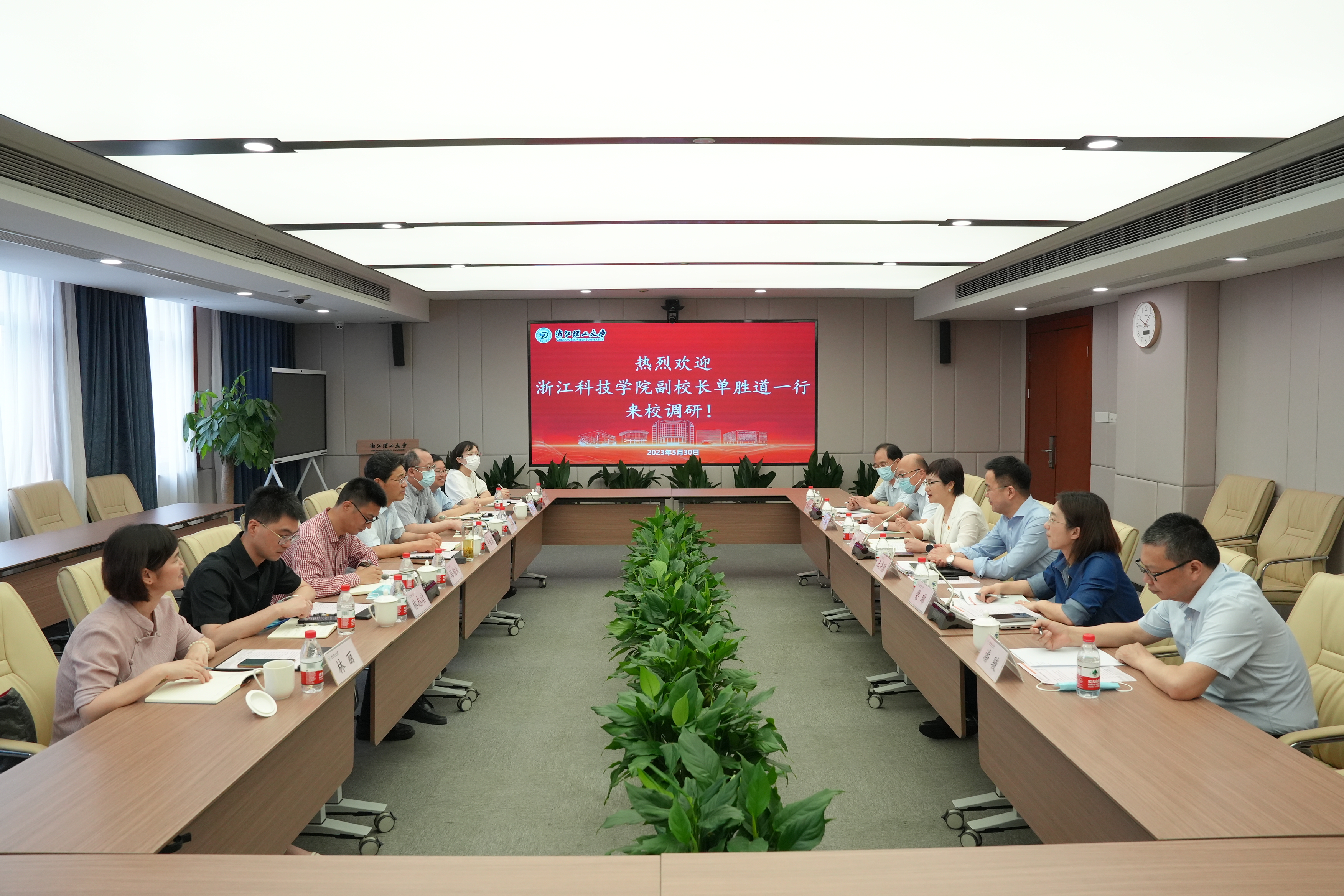 5月30日上午,浙江科技学院党委委员、副校长单胜道一行来校调研。校党委副书记姚珺出席调研座谈会。