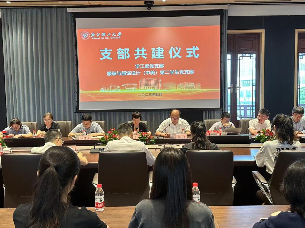 在党支部共建仪式上,党委学工部部长、学工部党支部书记胡琦和服装与服饰设计(中美)第二学生党支部书记汪珊分别介绍了支部情况,共同为党建共同体揭牌。双方表示,将以此次共建活动为契机,共同学习理论,共同交流体会,提升思想境界,提高党员发展能力和水平,畅通学生信息反馈渠道,创新师生交流联动机制。