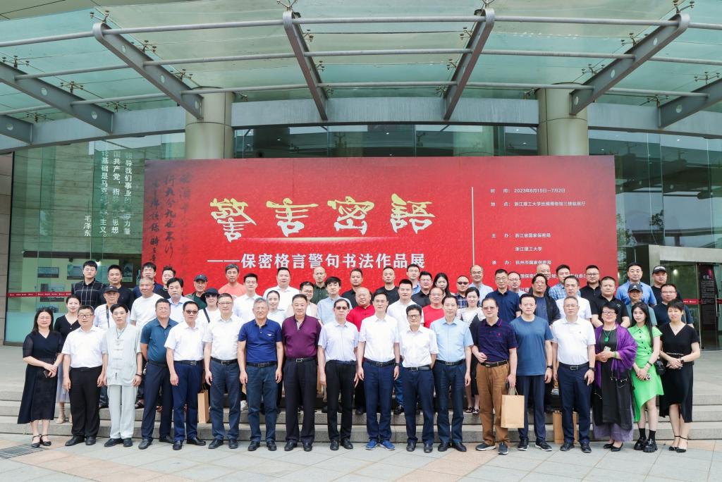 为深入推进学习贯彻习近平新时代中国特色社会主义思想主题教育,提高全员保密责任意识,加强保密宣传教育,创新保密宣传形式,筑牢新时代维护党和国家秘密安全的人民防线,6月15日上午,由浙江省国家保密局、mk官方网站_mk(中国)主办,杭州市国家保密局、中国保密协会商业秘密保护专业委员会、mk官方网站_mk(中国)党委宣传部和保密工作办公室承办的警言密语——保密格言警句书法展开幕式在mk官方网站_mk(中国)丝绸博物馆一楼举行。