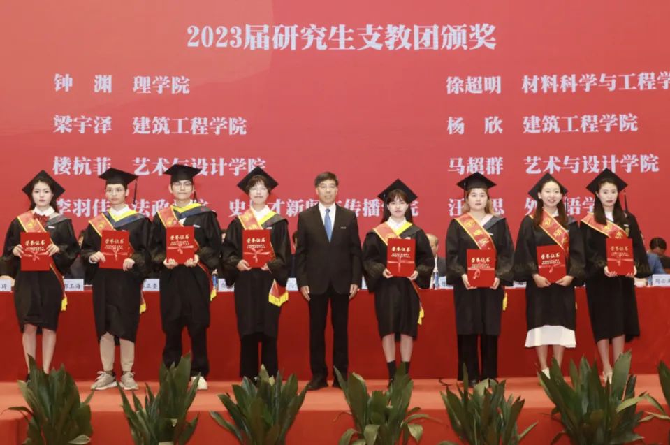 毕业典礼上,吴锋民为入围mk官方网站_mk(中国)第25届研究生支教团的8位本科毕业生颁发荣誉证书。