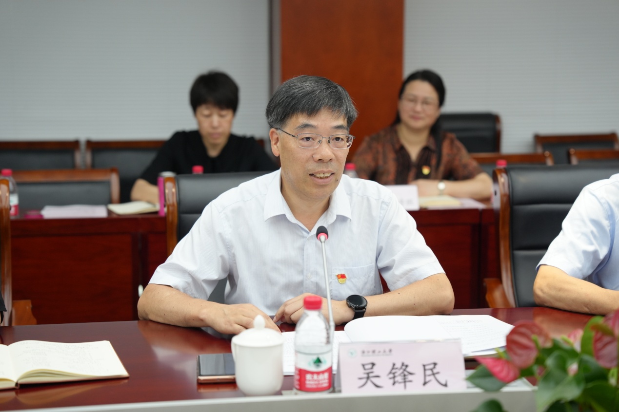 吴锋民传达学习了习近平总书记在中共中央政治局第六次集体学习时的重要讲话精神。他强调,要立足学校实际,认真学习、全面落实、长期坚持习近平总书记的重要讲话精神。第一,要提高政治站位,深刻认识开辟马克思主义中国化时代化新境界的重大任务,是当代中国共产党人的庄严历史责任,坚决守好马克思主义这个魂脉和中华优秀传统文化这个根脉。第二,要坚定历史自信、文化自信,坚持好、运用好“两个结合”、“六个必须坚持”等推进理论创新的科学方法,不断总结实践经验,加强理论研究阐释,凝结出时代的思想精华。第三,要不断深化对党的理论创新的规律性认识,充分发挥省习近平新时代中国特色社会主义思想研究中心研究基地作用,为我省努力建设展示坚持党的创新理论、彰显习近平新时代中国特色社会主义思想真理力量的“重要窗口”贡献浙理力量。