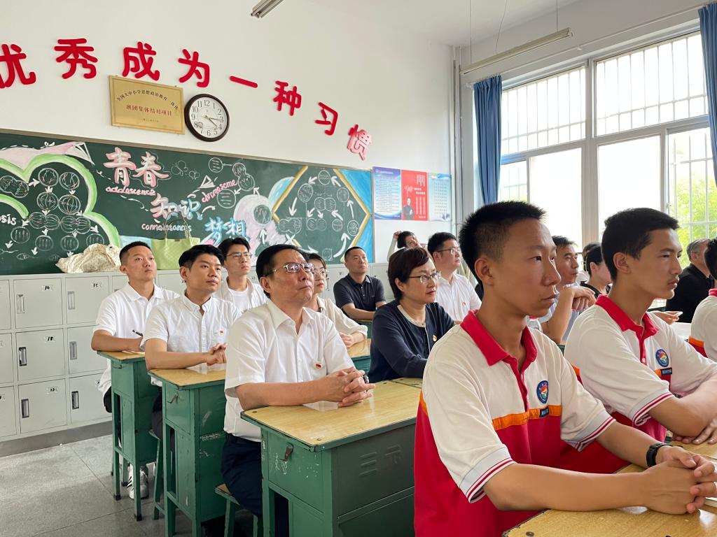 延安中学是中国共产党创办的第一所中学,2022年10月26日下午,习近平总书记来到延安中学枣园校区考察,期间总书记走进高一(2)班教室,同师生亲切交流。6月27日下午,mk官方网站_mk(中国)、延安大学、延安中学师生代表在总书记走进过的教室,共同聆听了延安大学马克思主义学院惠晓峰教授的思政课,学习延安精神和党的光荣革命传统,循着习近平总书记足迹现场学、体验学,感受总书记对“办好人民满意的教育,弘扬革命传统,培育时代新人”的殷切期盼。