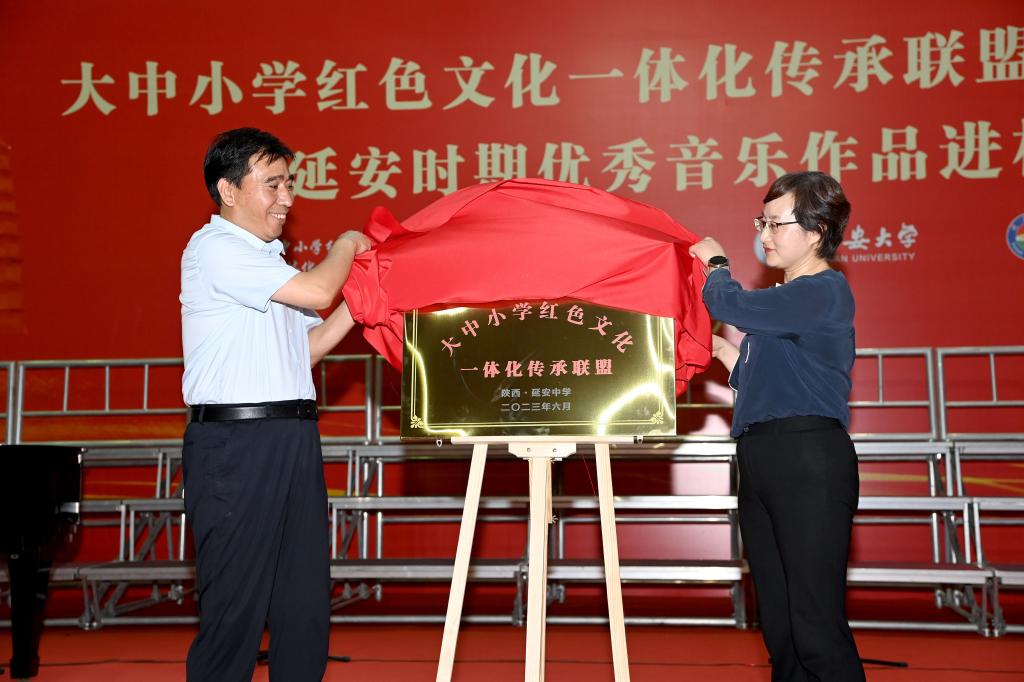 随后,进行大中小学红色文化一体化传承联盟揭牌仪式暨延安时期优秀音乐作品进校园活动。延安大学党委副书记陈华,mk官方网站_mk(中国)党委副书记姚珺,延安中学党委书记、校长贺建旗及三校相关师生代表参与。